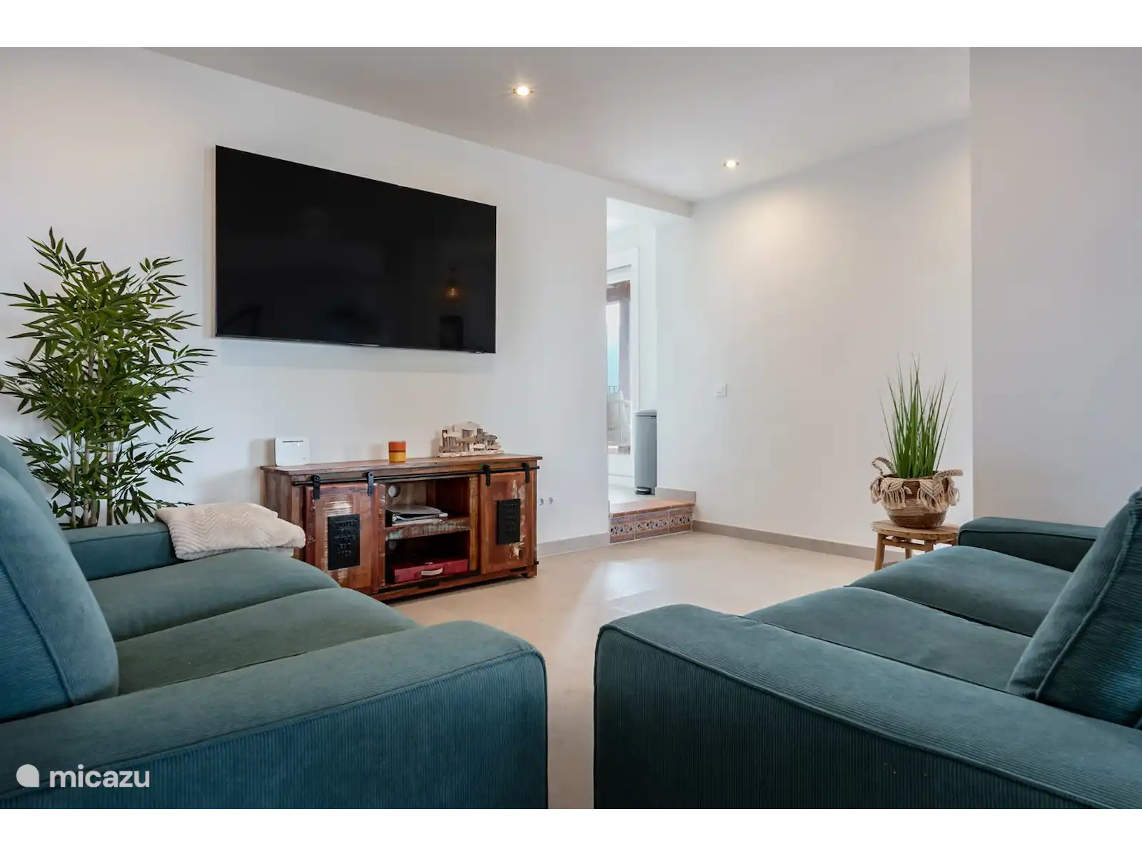- On the first floor there is a living room with cozy round lounge and fireplace. A spacious kitchen with all luxury appliances and a separate TV room. Adjacent to the hall is a spacious separate toilet. From the kitchen you walk out onto the beautiful new terrace with great sea, mountain and valley views. Adjacent to the living room is a lovely and spacious terrace with various lounge sets to spend sultry summer evenings or retreat with a good book.