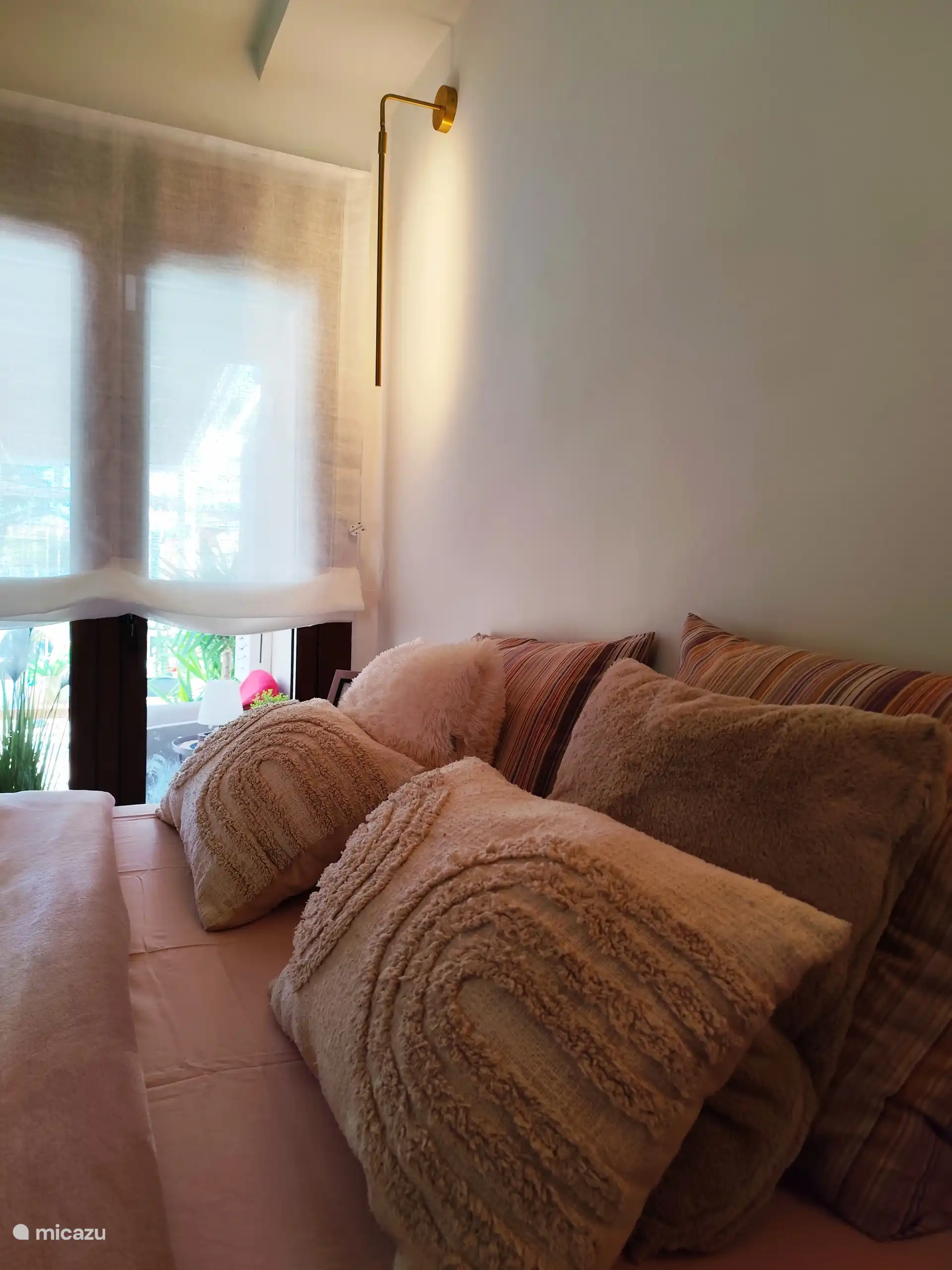 Meet your next holiday home.... this cozy and completely renovated "spanish casa" in Lo Pagán, San Pedro del Pinatar, ideal for those who want to live a stone's throw from the sea in a quiet area, with comfortable and functional spaces. Features of the house: Living area: 80 m² with open kitchen (all appliances) and sitting area with corner lounge. Smart TV and sockets everywhere with USB connections. Total area: 100 m² Bedrooms: 2 bright and well laid out bedrooms (master with walk-in dressing room and ensuite luxury bathroom with towel radiator - guest bathroom with infrared heating) The renovation has just been completed and was done with modern materials and finishes. Air conditioning and ceiling fans. in all rooms. Terrace (much of which is covered) at the front: ideal for enjoying the outdoors or relaxing in the shade. Private outdoor area with laundry room and storage room. Location: Just 800m from the beach and with all amenities nearby. 1 small pet is allowed. This bungalow is ideal for those looking for tranquility, proximity to the sea and a comfortable layout, in one of the most sought-after areas on the coast of Murcia. Murcia, for example, is one of those regions that looks like a jewel box due to the abundance of wonders it houses. Not only for its cuisine, its landscapes or the mild climate that it offers almost all year round, but also for its experiences that are completely different from what we imagine in a vacation. Also available for winter rental from October to April. Max 1 pet allowed. Smoking is only allowed in the outdoor area.
