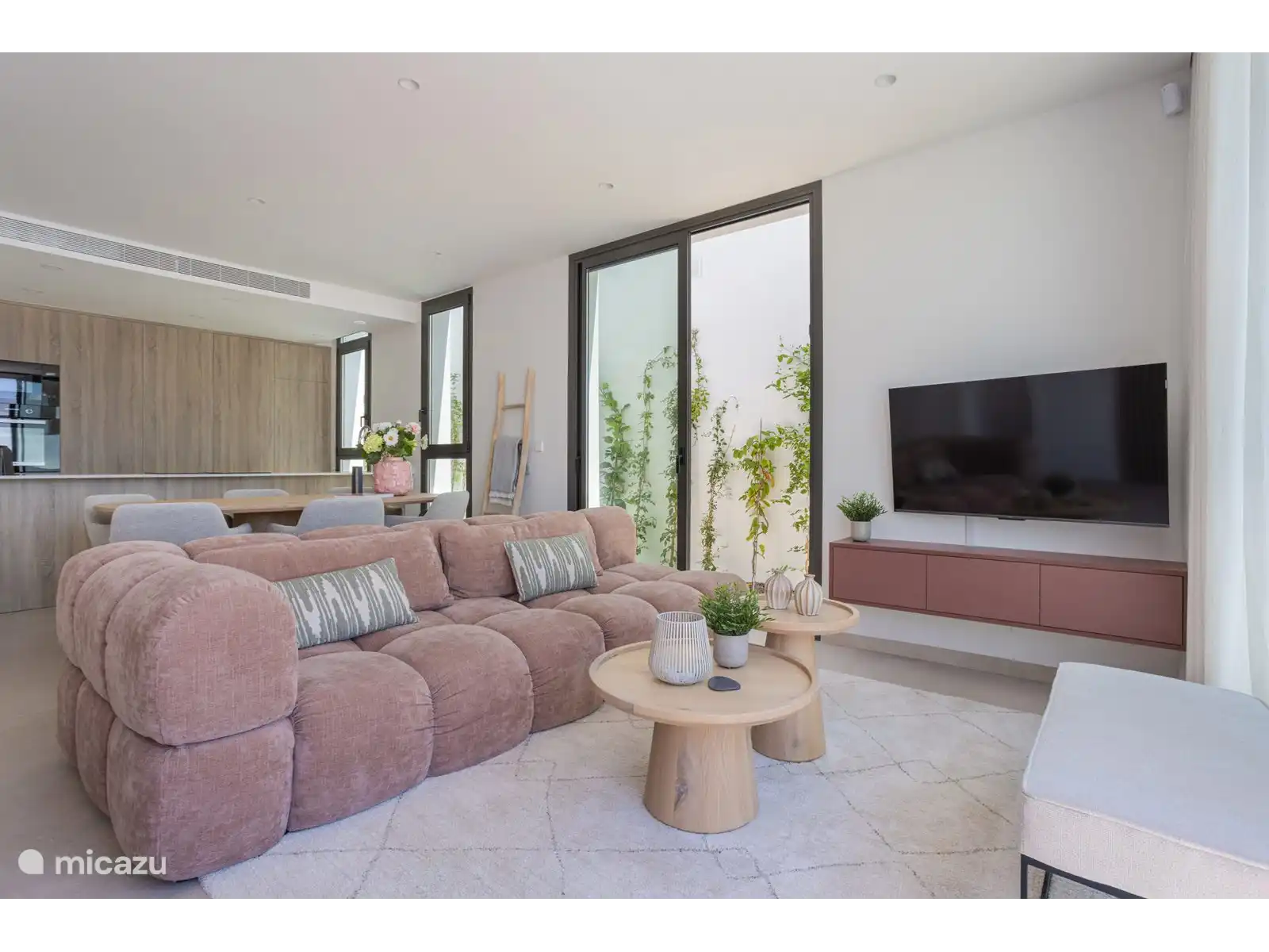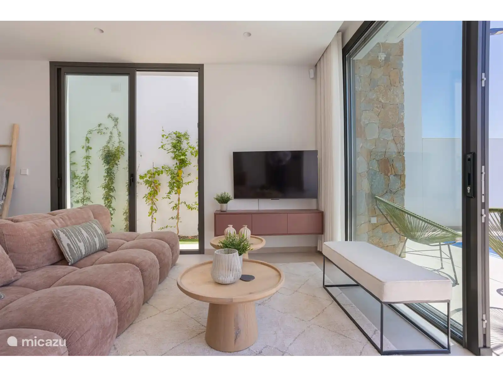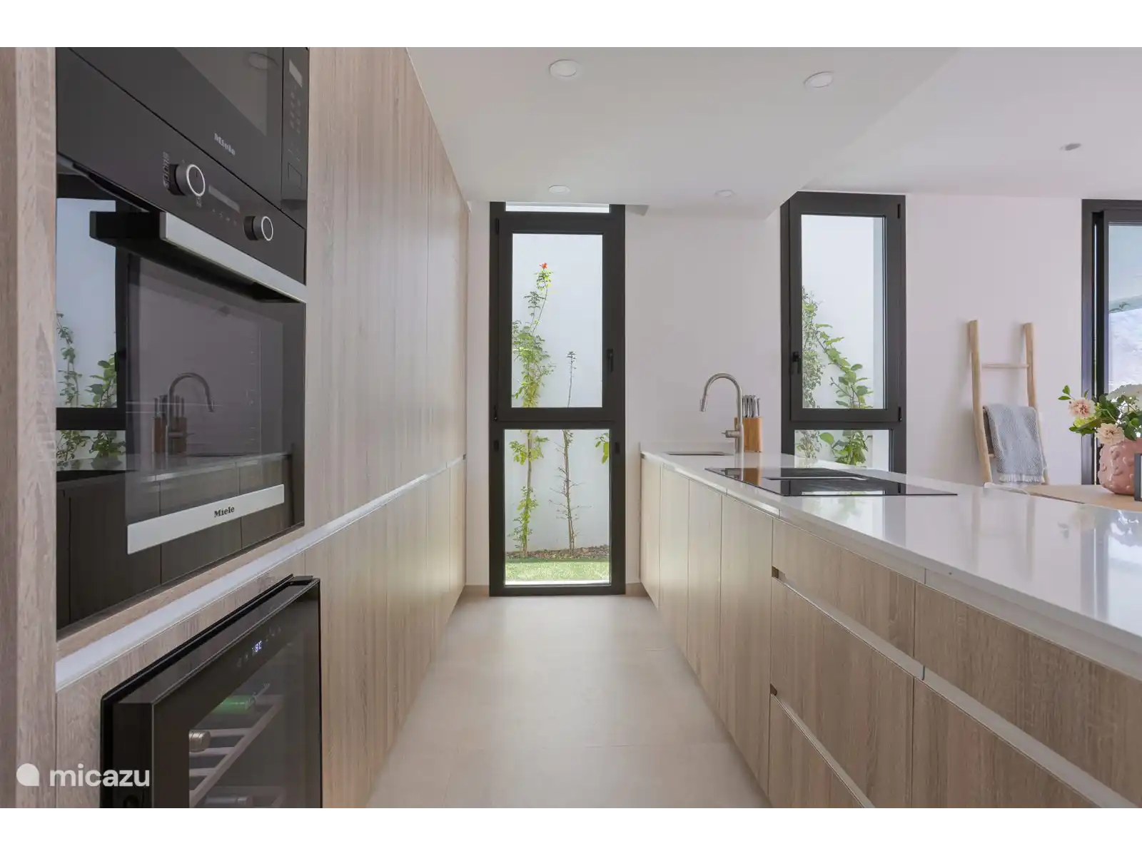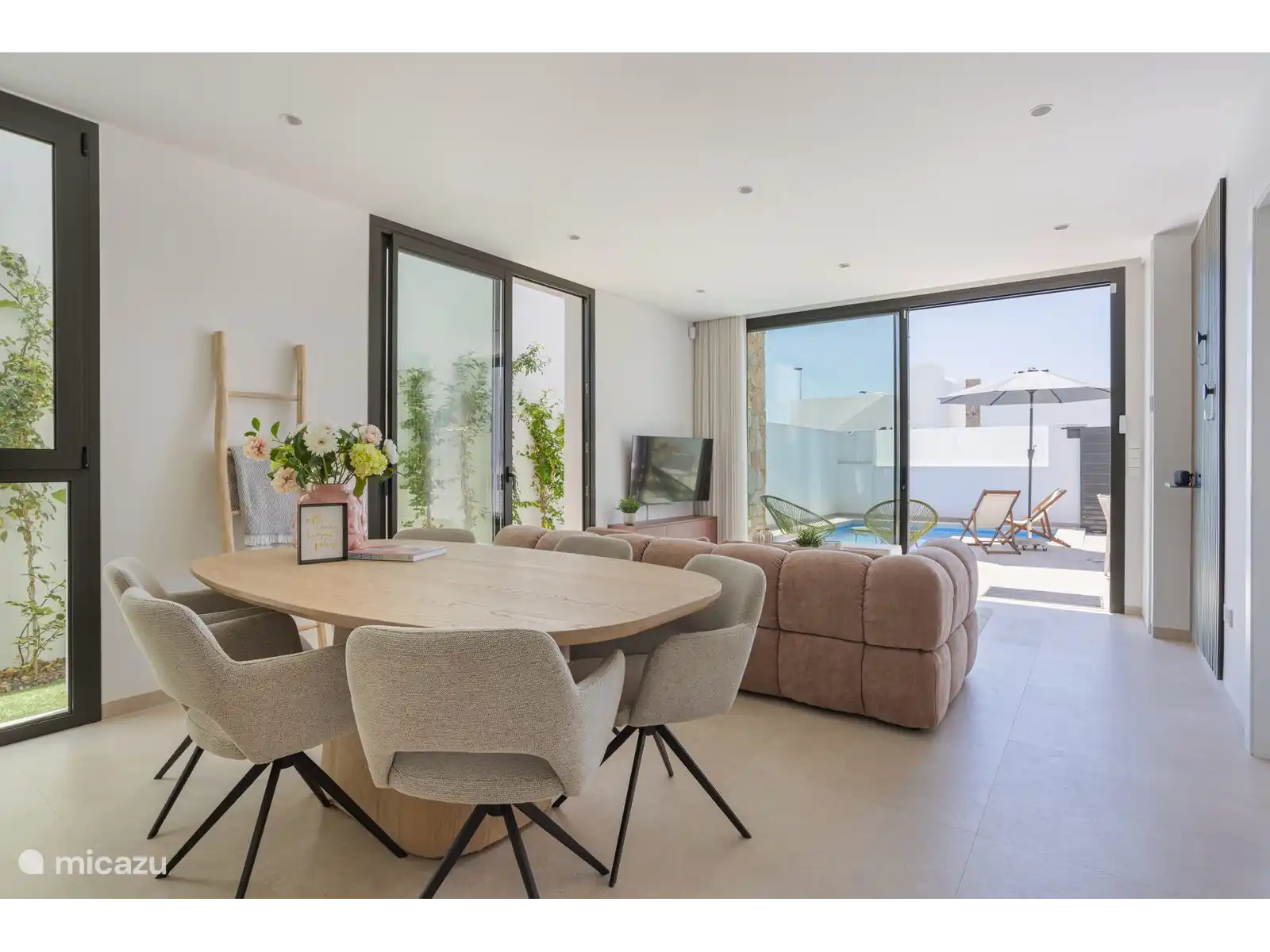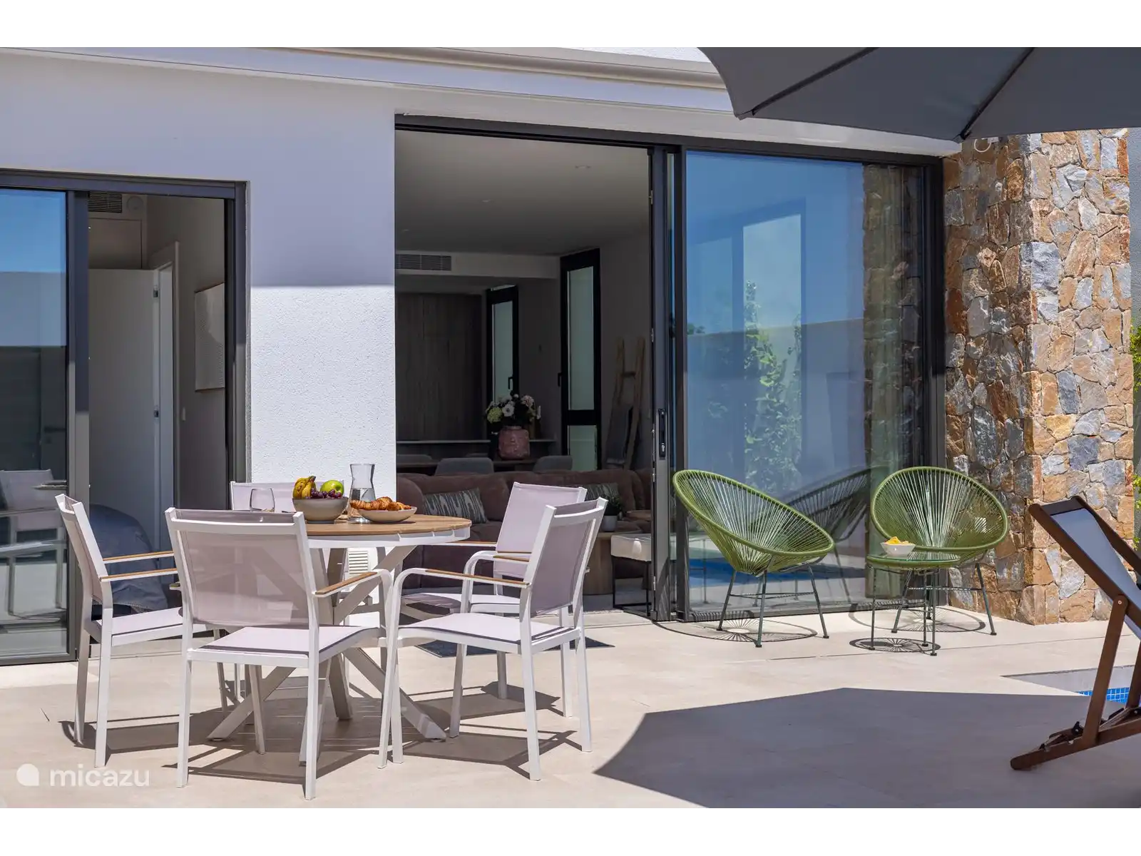 This stylishly decorated villa has 3 bedrooms, 2 luxurious bathrooms and a beautiful living room overlooking the pool. The modern kitchen makes your stay even more comfortable. From the bright living room you enter the enclosed garden through the large sliding door where you can enjoy the pool, dine or relax.