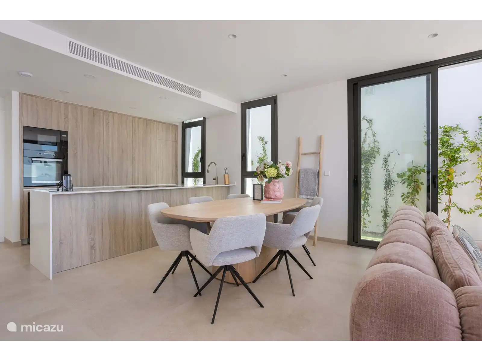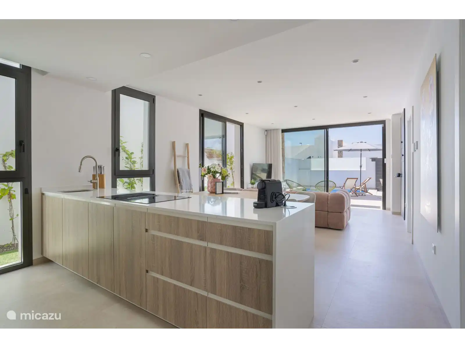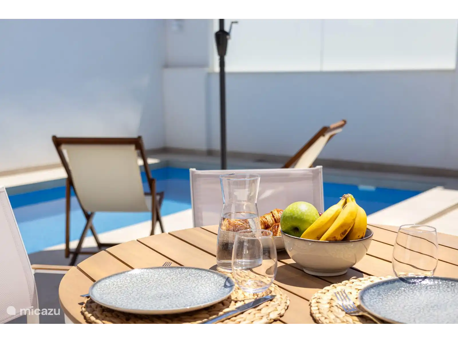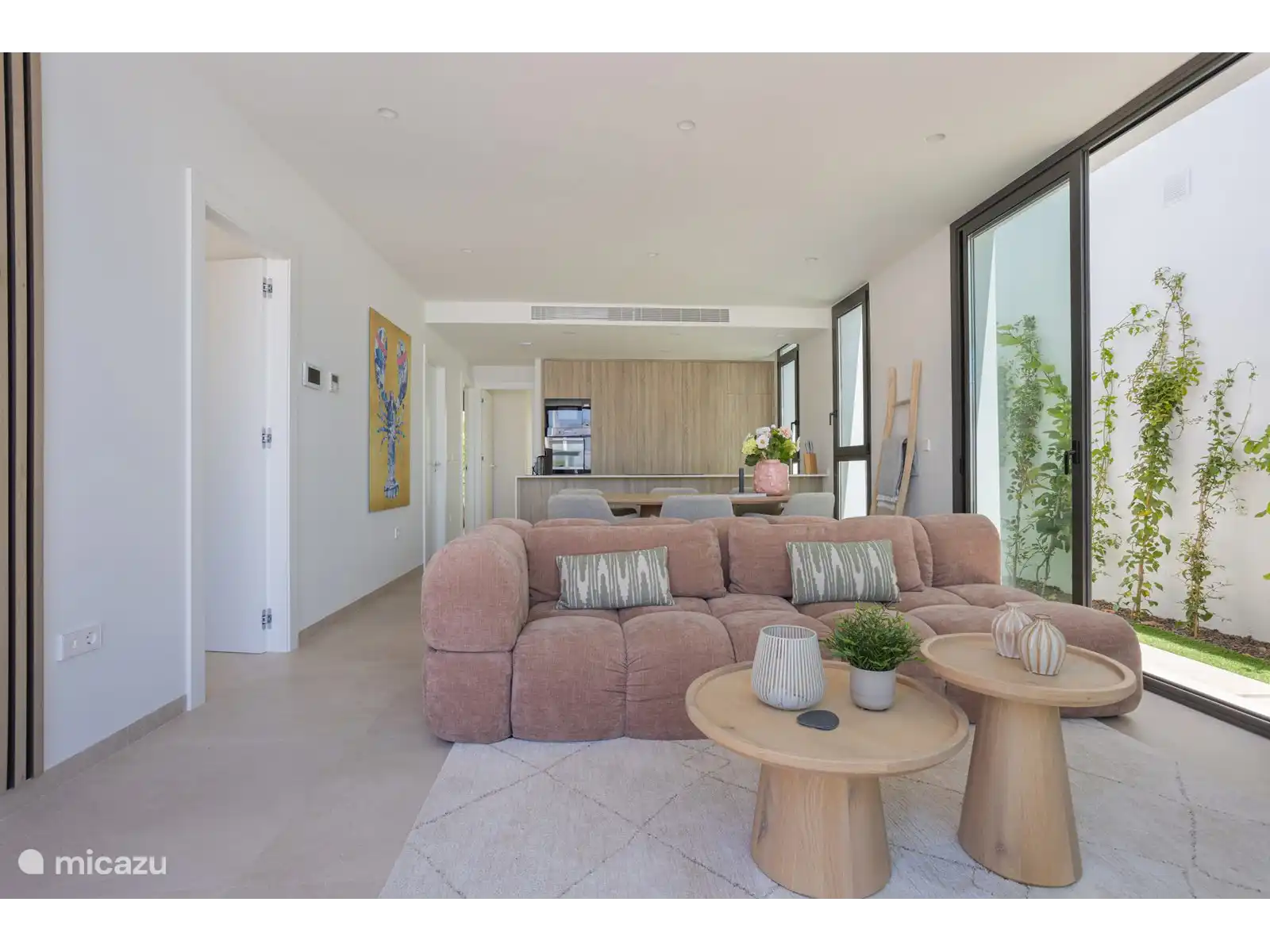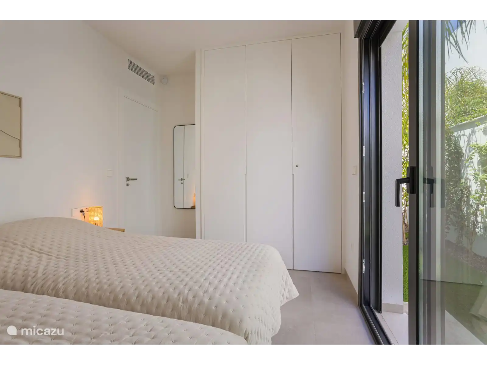 This stylishly decorated villa has 3 bedrooms, 2 luxurious bathrooms and a beautiful living room overlooking the pool. The modern kitchen makes your stay even more comfortable. From the bright living room you enter the enclosed garden through the large sliding door where you can enjoy the pool, dine or relax.