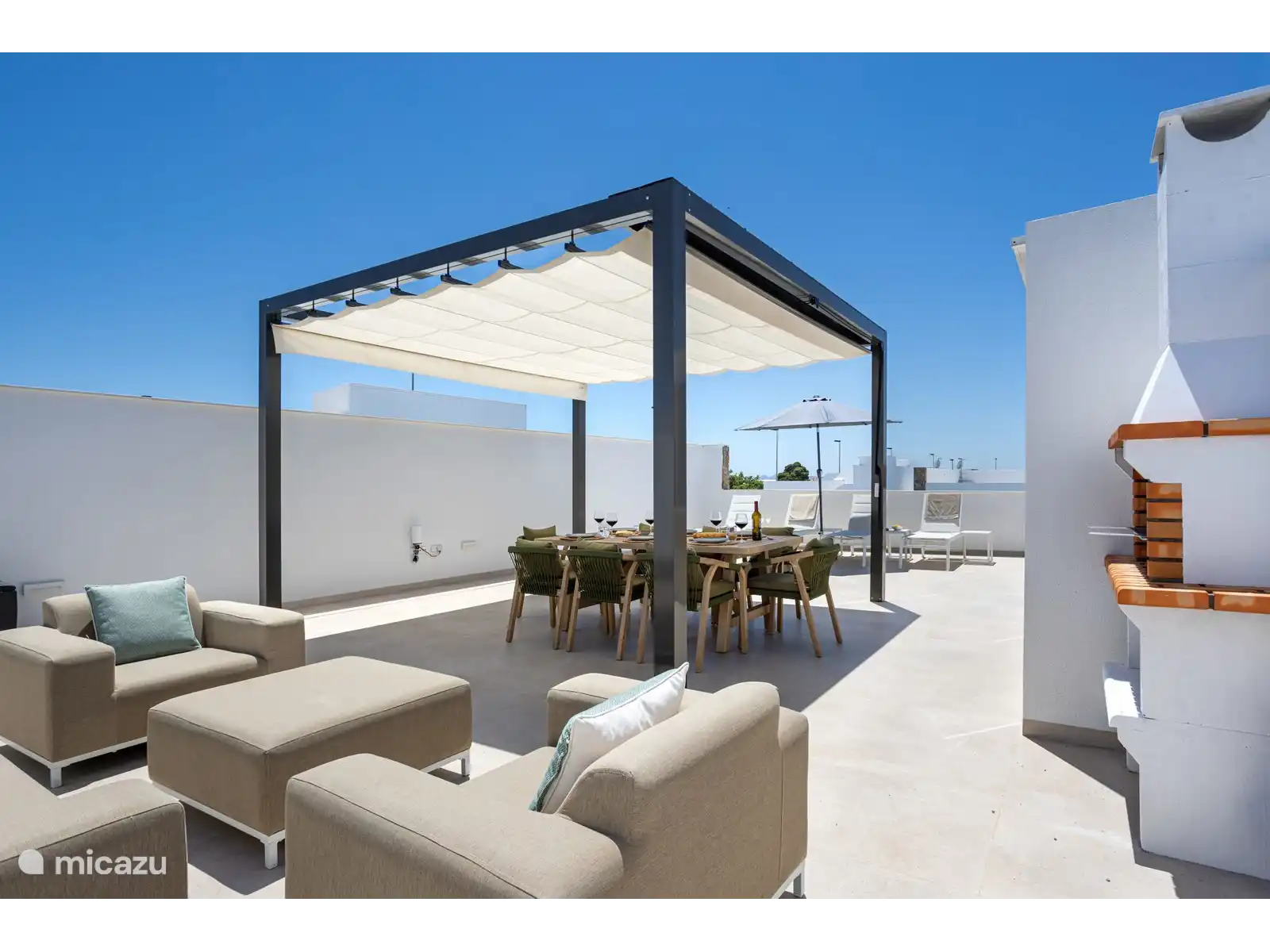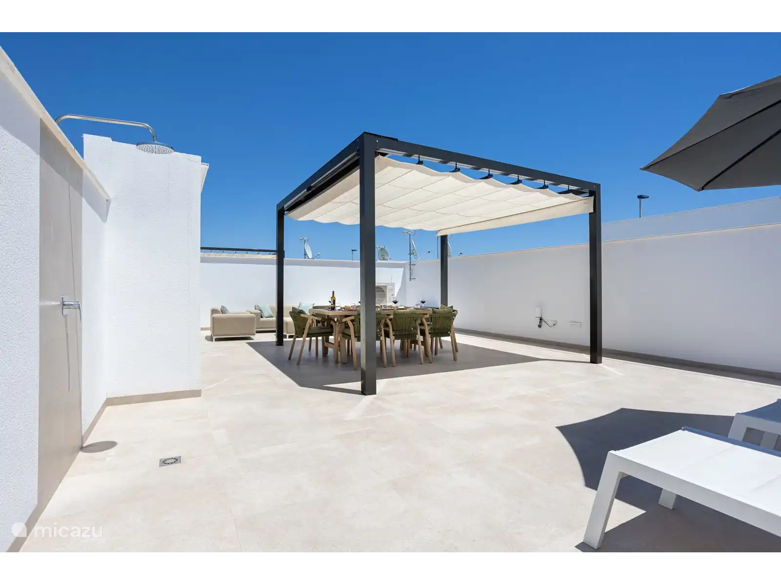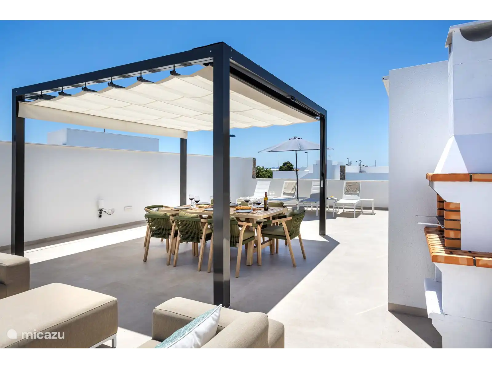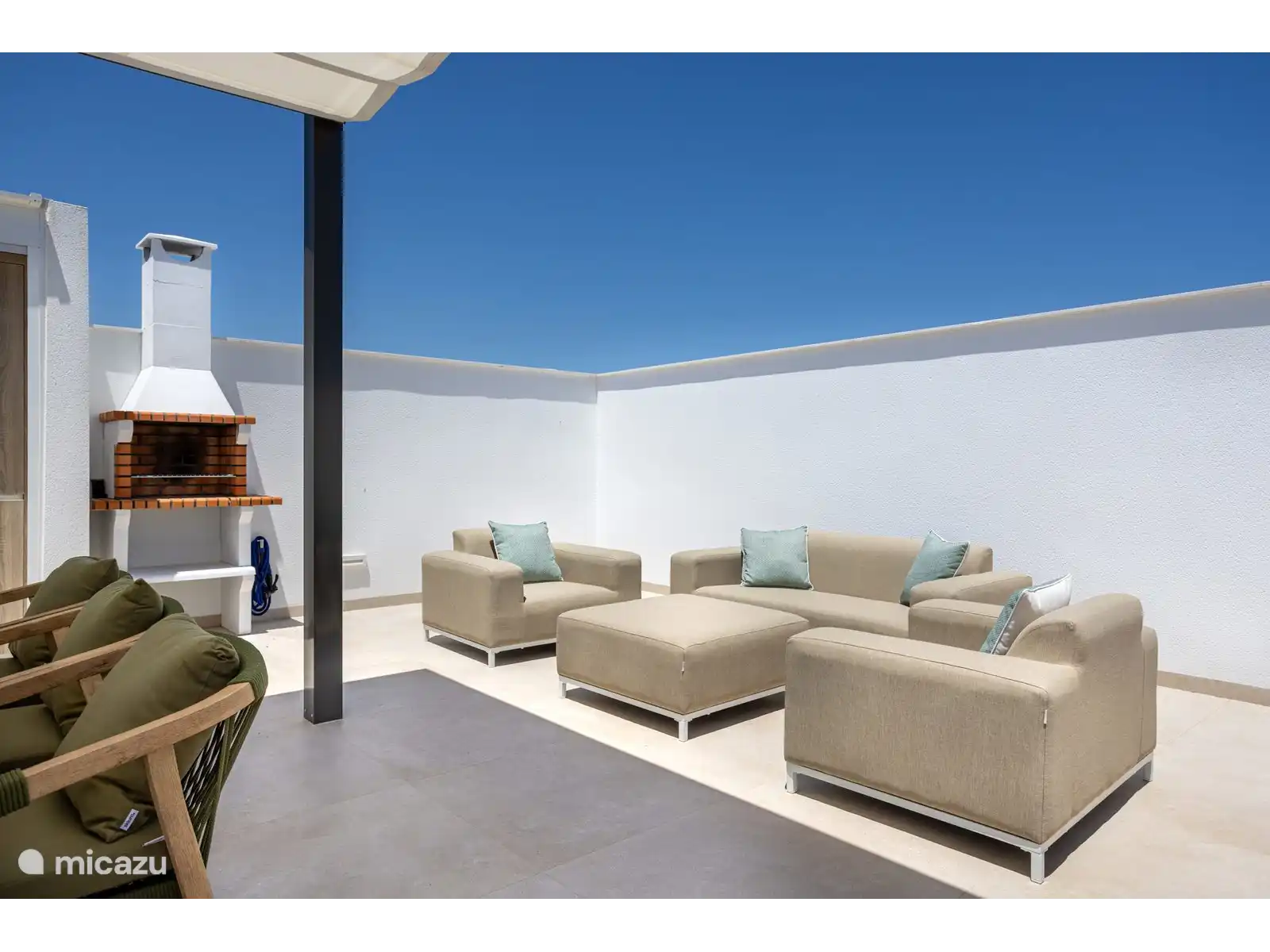Make the most of the rooftop terrace and soak up the sun with a cold drink from the fridge. The fully equipped outdoor kitchen with fridge, freezer, dishwasher, glasses, plates and cutlery lets you enjoy Spanish life even more.