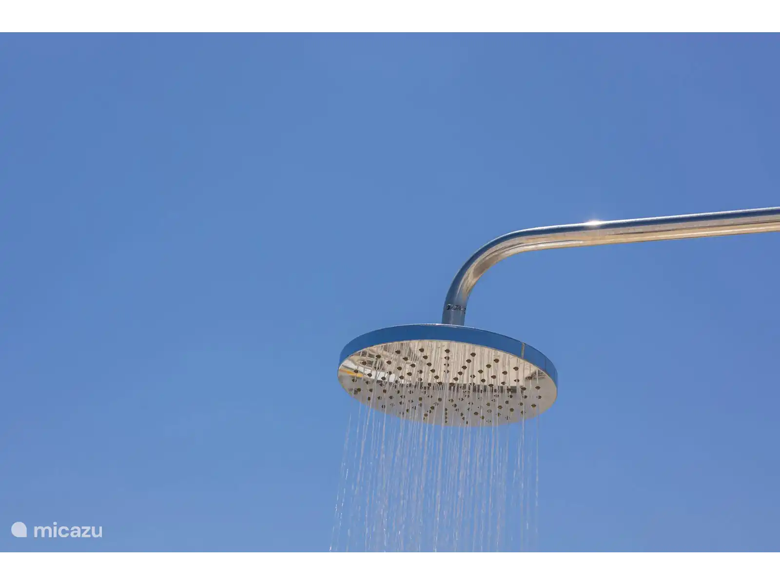 The roof terrace is an oasis of relaxation with a lounge set, comfortable sunbeds, outdoor shower and a large dining table. Thanks to the fully equipped kitchen, you can stay where you are and relax to the fullest.