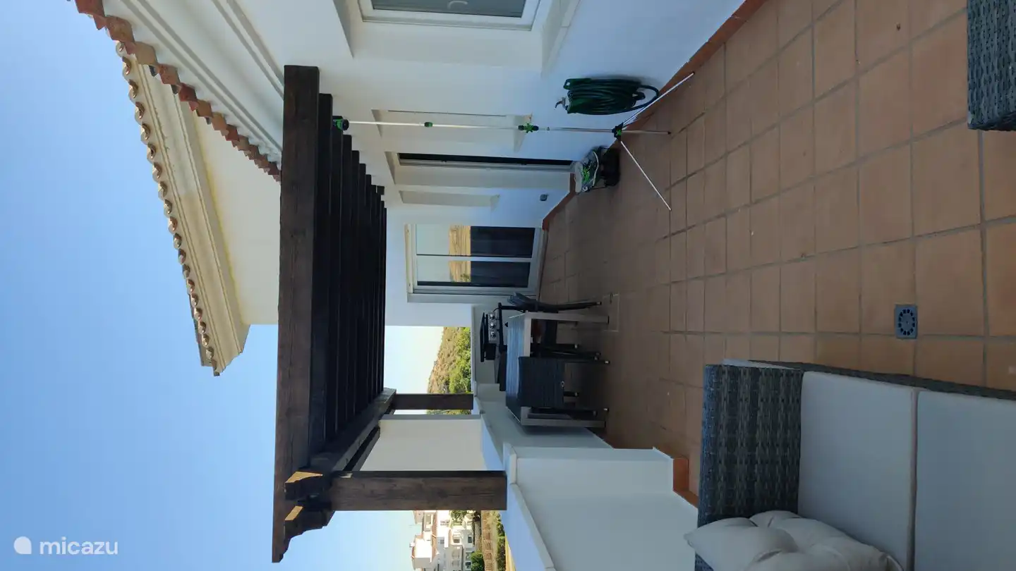 The penthouse is on the 3rd floor (elevator close to the front door which also opens into parking garage) and from the large terrace (40m2) you look left onto the large swimming pool.