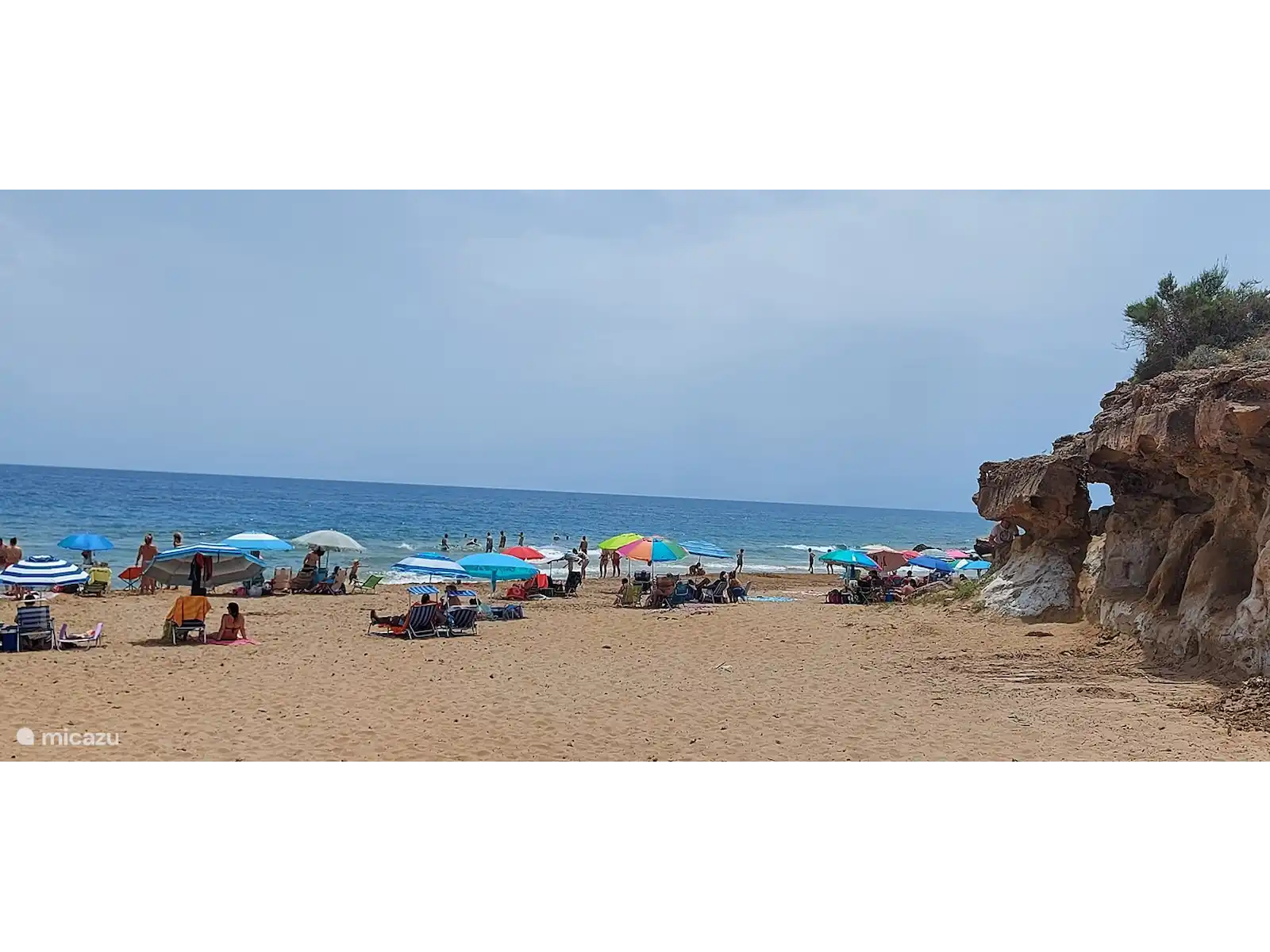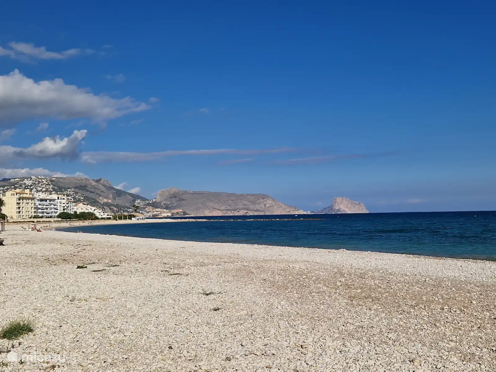 The living room has a sitting area with Smart TV and a dining area for 4 people. The open kitchen is equipped with an induction hob, oven, fridge with freezer, dishwasher and microwave. There is a separate storage room with washing machine and storage space. A sliding door leads to a spacious terrace with sea view, dining area and a small garden. Through a gate you have direct access to the courtyard and the swimming pool. There are 2 bedrooms and 2 bathrooms with toilet and shower. The master bedroom has a double bed and a built-in wardrobe and Smart TV. The second bedroom has two single beds and a built-in wardrobe.