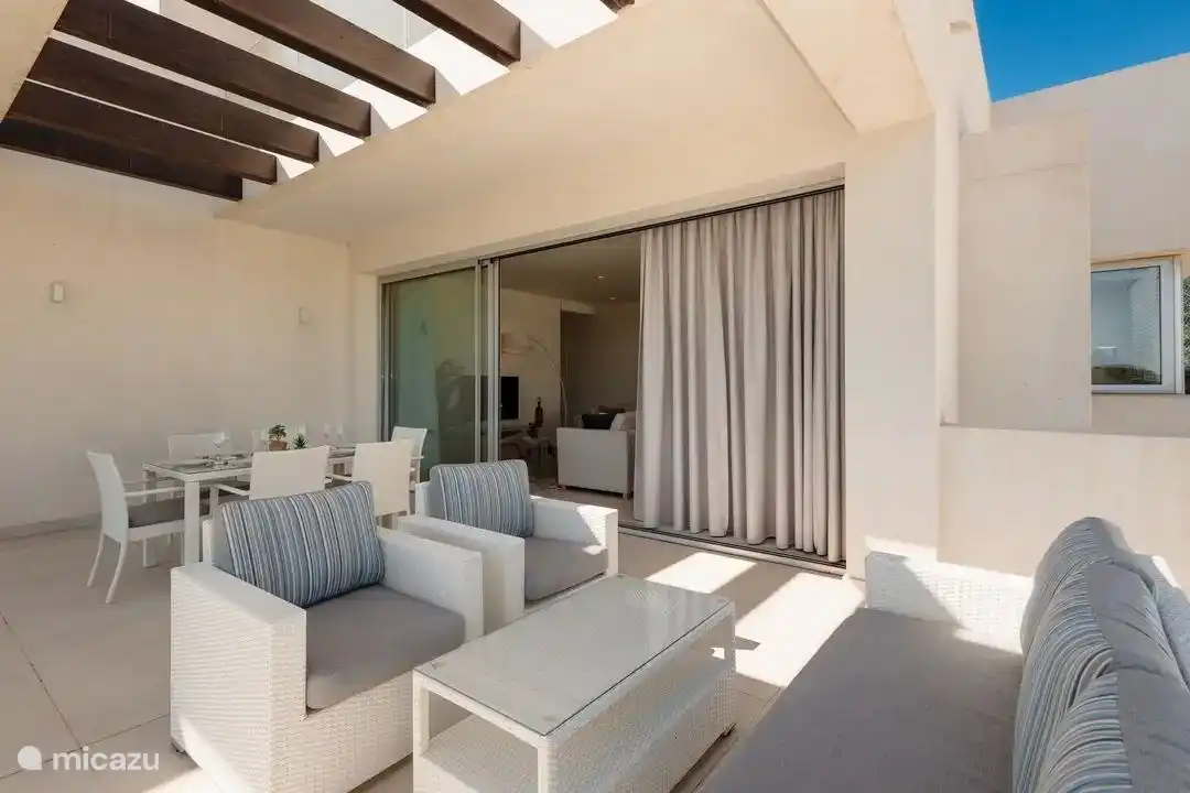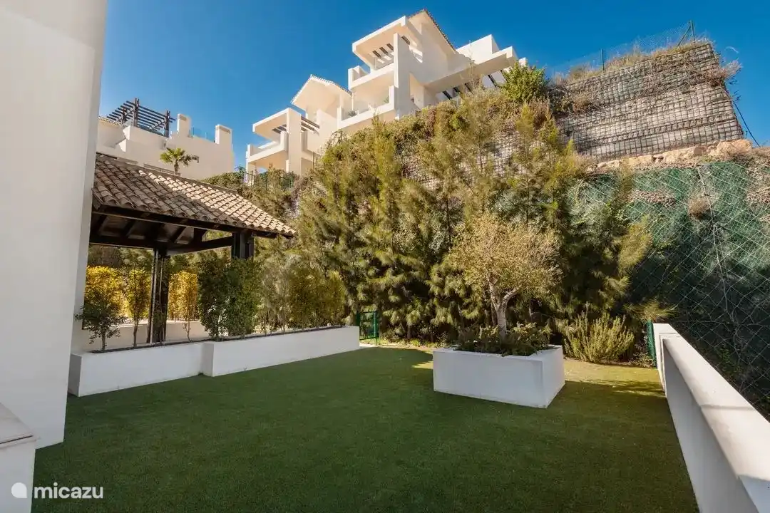 You have removed this house from your favorites apartment, Benahavis, Costa del Sol, Spain - El Paraiso, Marbella, San Pedro Terrace of 31m2 with sitting area and dining table. sitting area on terrace Terrace and dining area with BBQ Terrace seating area with a view Cozy food with a nice view. From the terrace you have a view of the beautiful garden and swimming pool Grassy swimming pool all around for lounging around and sitting in the sun (or shade) Swimming pool Large sitting room of 55m2 Living room 55m2 Living, spacious and light Living room In the evening it is also cozy in the spacious sitting room Kitchen incl. dishwasher, oven, microwave, kettle, Nespresso icl. milk frother, toaster etc View from kitchen to terrace master bedroom master bedroom master bathroom second bedroom second bedroom second bathroom Perfectly maintained garden with swimming pool The apartment is on the first floor. No upstairs neighbors and no neighbors left Part of the view from terrace with the Mediterranean Sea in the distance The terrace even has sea views... a little :) In the afternoon a glass of wine with ham and olives At sunset, an evening walk on the boulevard Have a delicious lunch at one of the cozy beach bars In winter, 2 hours drive, Sierra Nevada, skiing from 3200m. The sea can be seen in the background El Paraiso, Marbella, San Pedro 9.0 Spain Costa del Sol Marbella 1-4 persons 2 Bedrooms 28 reviews Nightly rate from Per week (7 nights): € 990,- Nightly rate from € 141,-