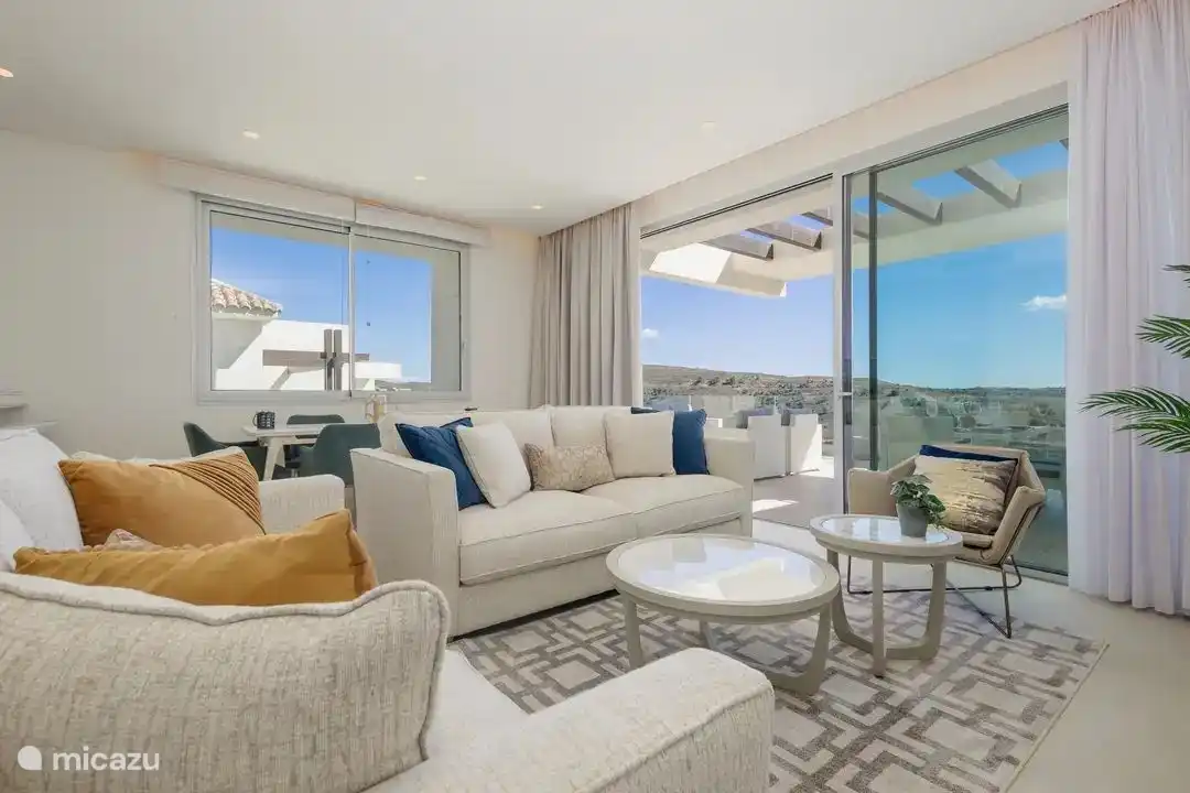 You have removed this house from your favorites penthouse, Benahavis, Costa del Sol, Spain - Los Arqueros penthouse sea view dining on roof terrace with sea and mountain views living room with dining table and sitting area with TV. French doors to the balcony. See also the fantastic skyline master bedroom with patio doors balcony with sea view. Great for lounging after a day at the sea or golf. Accessible from the living room through patio doors, kitchen second bedroom with 2 single beds. View of the golf course one of the two bathrooms one of the 2 bathrooms very spacious roof terrace with dining set with bbq and sun loungers including outdoor shower to cool off. Or take a dip in the communal outdoor pool of the residential complex communal outdoor pool of the residential complex photo of the lounge on the balcony, photo taken from the stairs to the roof terrace view of the rear of the complex, taken from the pool. Penthouse is more towards the end seen from here marbella beach - puerto banus wide choice of beach bars along the boulevard between san pedro de alcantara and marbella. on the beach of san pedro de alcantara one of the many cozy beach bars in san pedro de alcantara view from the balcony sunbathe on the roof terrace with the clubhouse of the golf club of los arqueros in the background roof terrace overlooking golf course and clubhouse of los arqueros country club. Roof terrace has an outdoor shower and awning (photo taken when the dining set was not yet there) lovely swimming pool. Fantastic location with beautiful garden around it beach soccer in san pedro de alcantara Los Arqueros penthouse sea view 9.2 Spain Costa del Sol Benahavis 1-4 persons 2 Bedrooms 11 reviews Nightly rate from Per week (7 nights): € 784,- Nightly rate from € 112,-