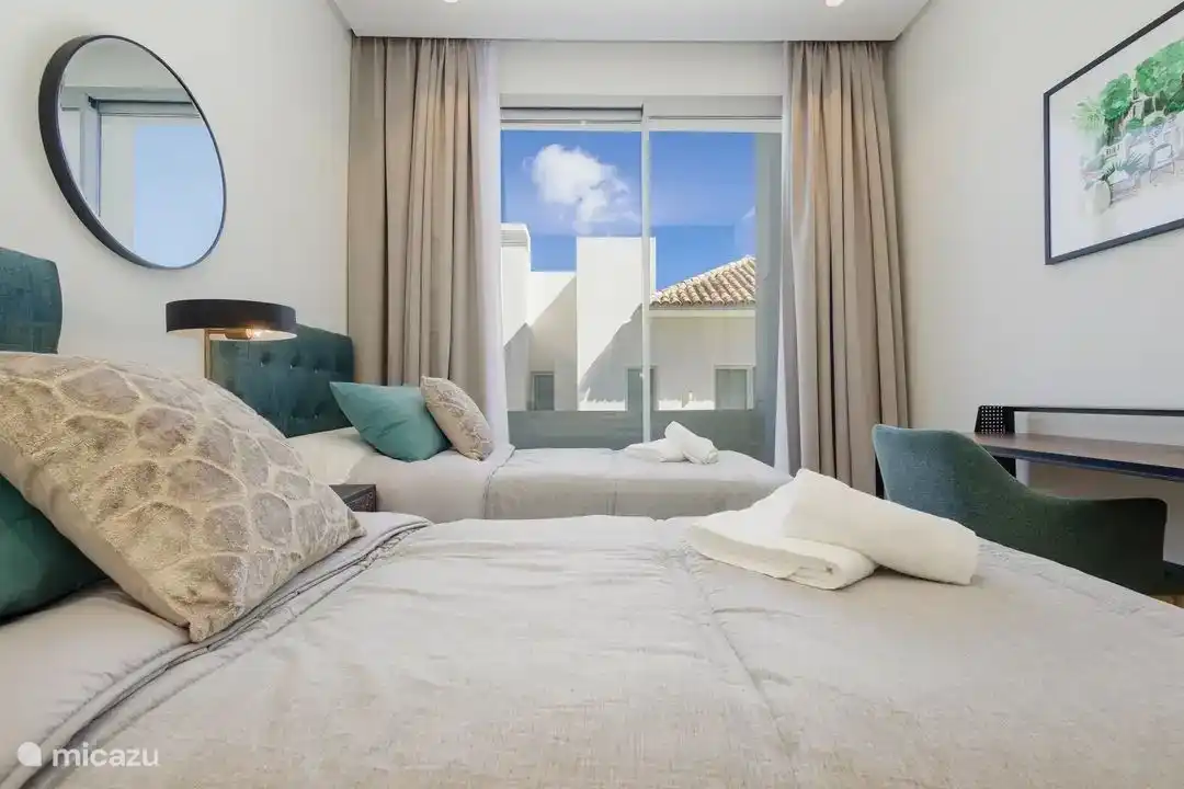 You have removed this house from your favorites Last-minute apartment, Benahavis, Costa del Sol, Spain - Casa Colivia Lovely Panorama apartment on the first floor with a beautiful view towards the sea and over the golf course and valley. Apartment has a spacious balcony and rear terrace with lounge sofa. Panoramic view. Very bright sunny living room with large smart TV with chromecast for many channels. And mega fast wifi. The living room also has a view of the lovely swimming pool. Dining table for 4 people. Pool view. Balcony with large awning. Lovely dining area to spend cozy evenings. Fine cuisine. Bedroom 1: with double bed, lovely comfortable room with plenty of closet space. Bedroom 1 with plenty of closet space. Bedroom 1: 2 person bed. Very light and comfortable. Bedroom 1 Bedroom 1 : with king-size double bed Bedroom 2; 2 single beds. Bedroom 2: Lots of closet space. Bedroom 1 with bathroom bath and toilet. Hall to bedrooms and bathrooms. Bathroom 2: Shower, toilet and sink. Bathroom 1: Bath, toilet and sink with plenty of cupboard space. Lovely bathrooms with lovely bath linen. Terrace with lovely views of garden and valley. Rear terrace with lounge sofa, overlooking valley and backyard with fruit trees. Chilled out place for the evening to relax. In front of a terrace with panoramic view and blissfully rising morning sun to wake up with your cup of coffee Lovely sunny terrace, equipped with awning. Lovely balcony for a delicious breakfast or dinner. Enjoy the delicious Spanish wines. View of pool and golf course. Next to the apartment is the lovely communal swimming pool. Visible from the living room. Lovely quiet communal pool. Lovely garden with fruit trees. Panoramic view of the golf course In the evening a wonderful relaxed atmosphere! Lovely sunrise from the living room. Beach clubs 10 minutes away by car. you look from apartment on El Paraiso golf, and is 3 minutes away. The beautiful beaches are an 8 min drive away. Beach club at a distance 10 min drive. El Paraiso Golf Club Casa Colivia 9.1 Spain Costa del Sol Benahavis 1-4 persons 2 Bedrooms 2 reviews Nightly rate from Per week (7 nights): € 820,- Nightly rate from € 117,-