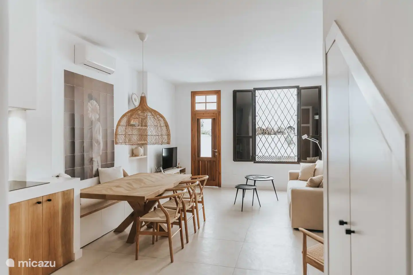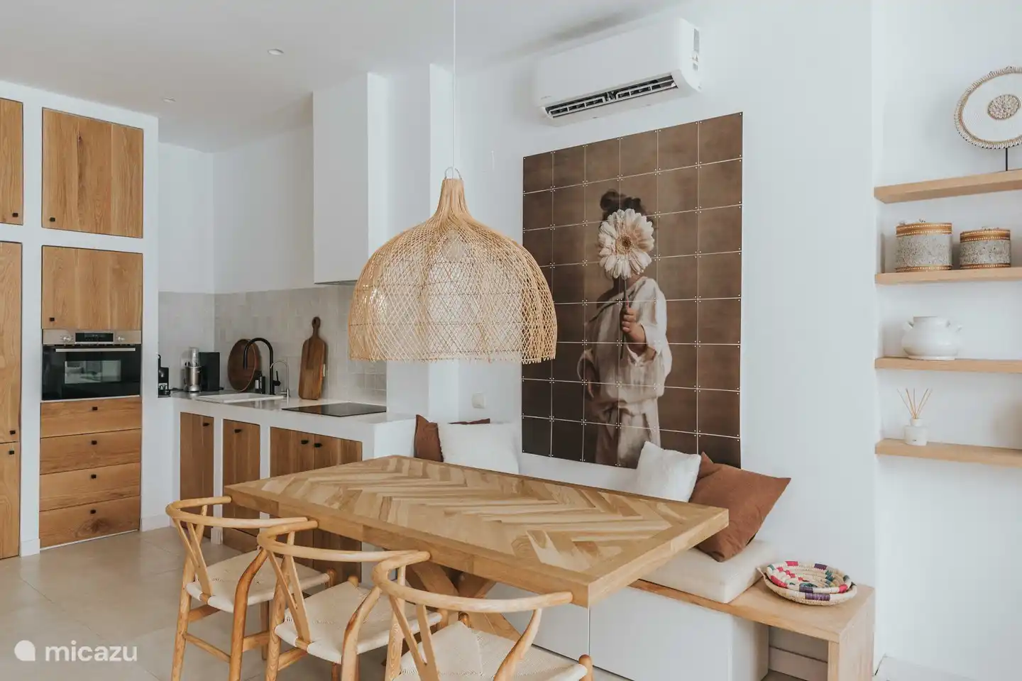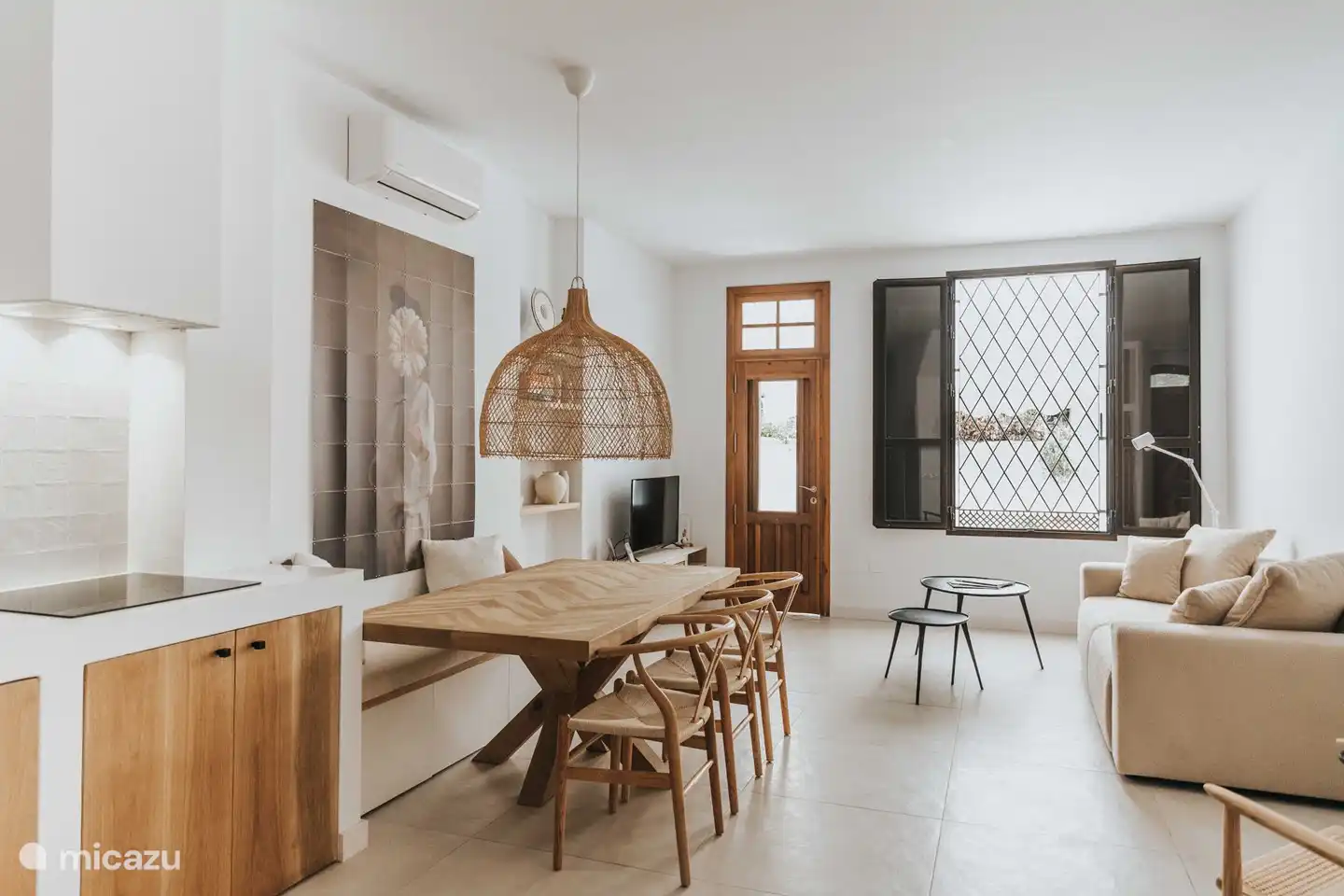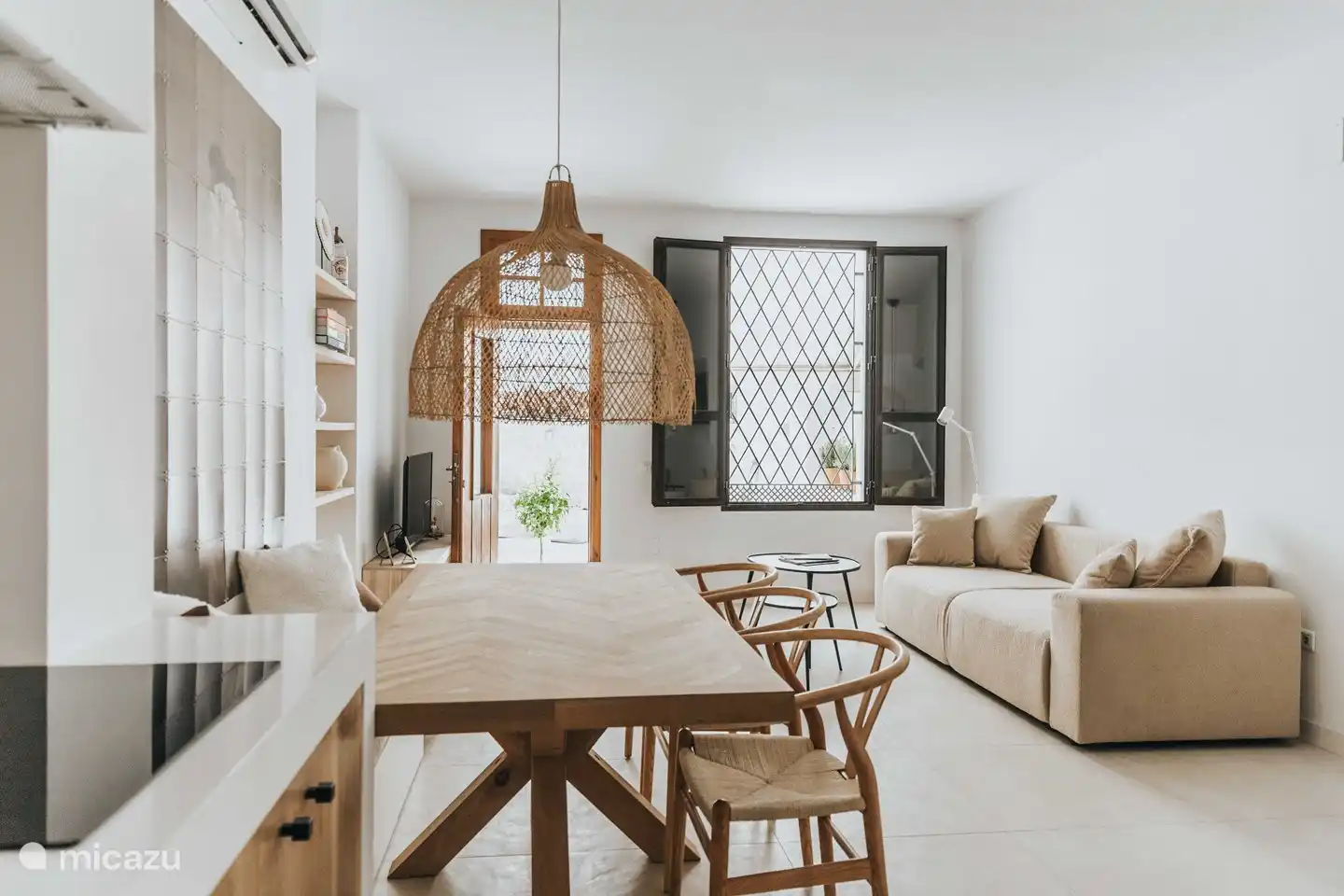 - A spacious sitting room with dining table, coffee table and ceiling fan, 2 leather sofas and flat screen satellite TV CanalDigital. (Dutch ducts), air conditioning/heating.