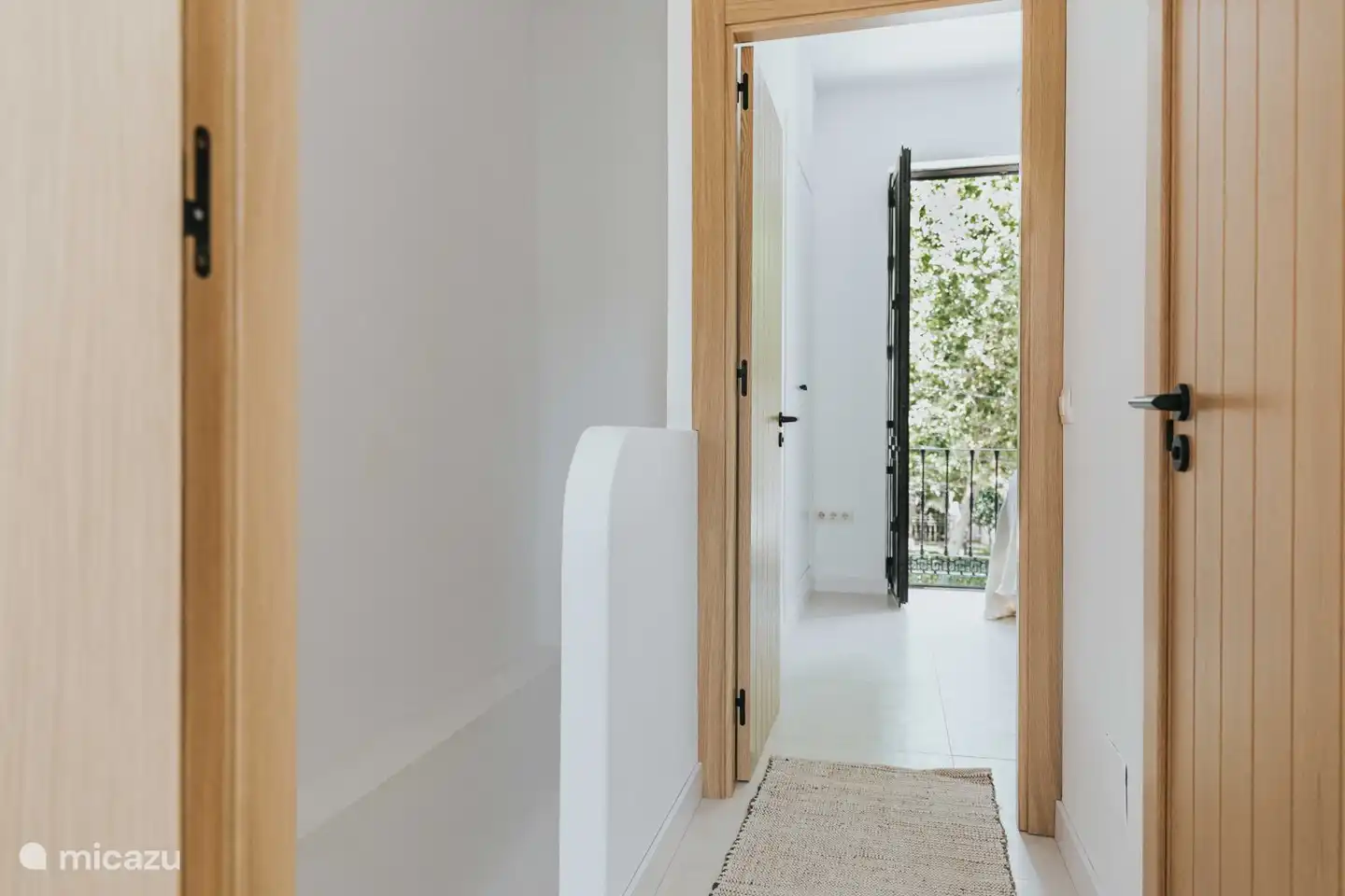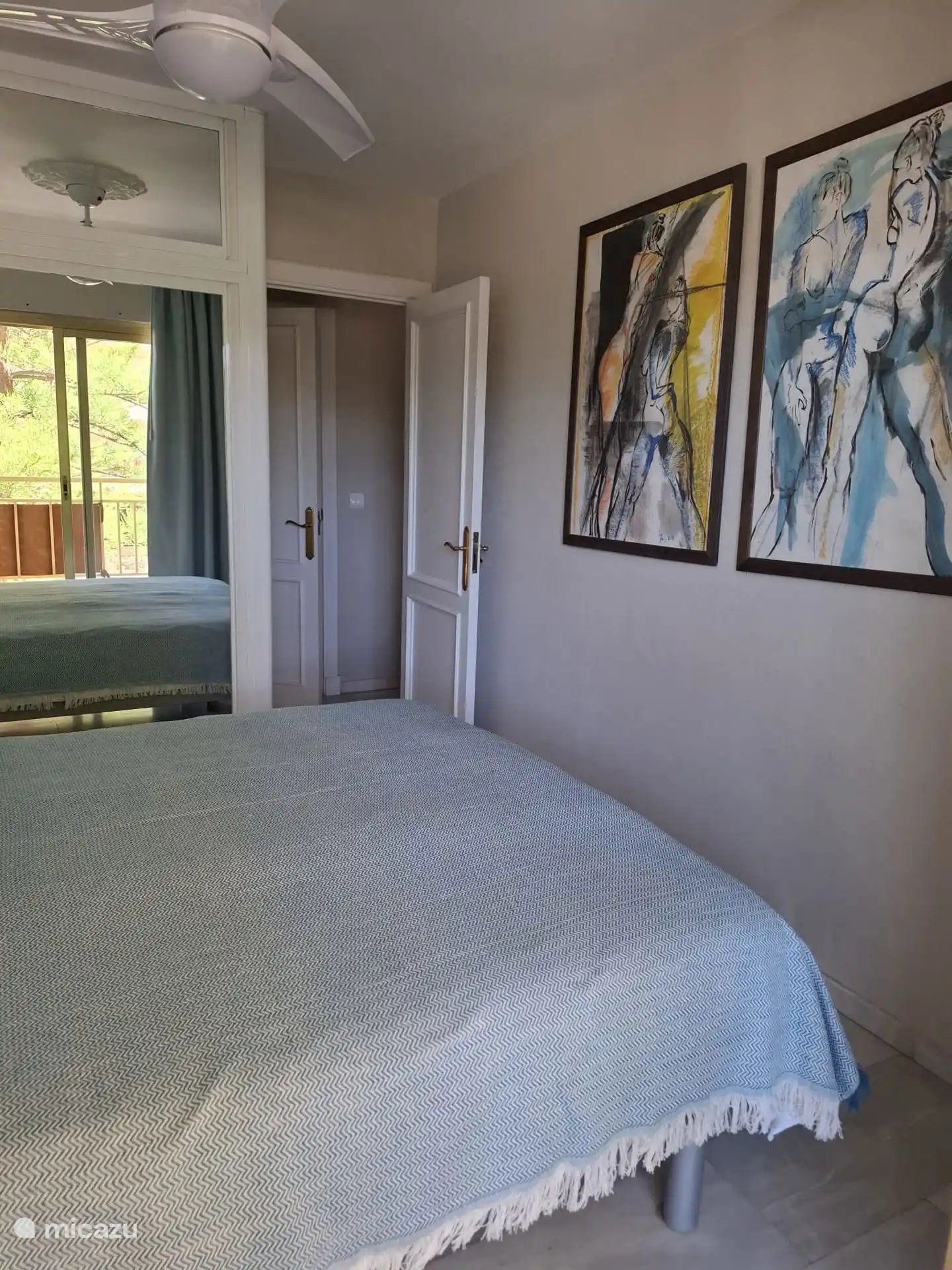- 2 bedrooms, each with a double bed, with spacious wardrobes and access to the large balcony.