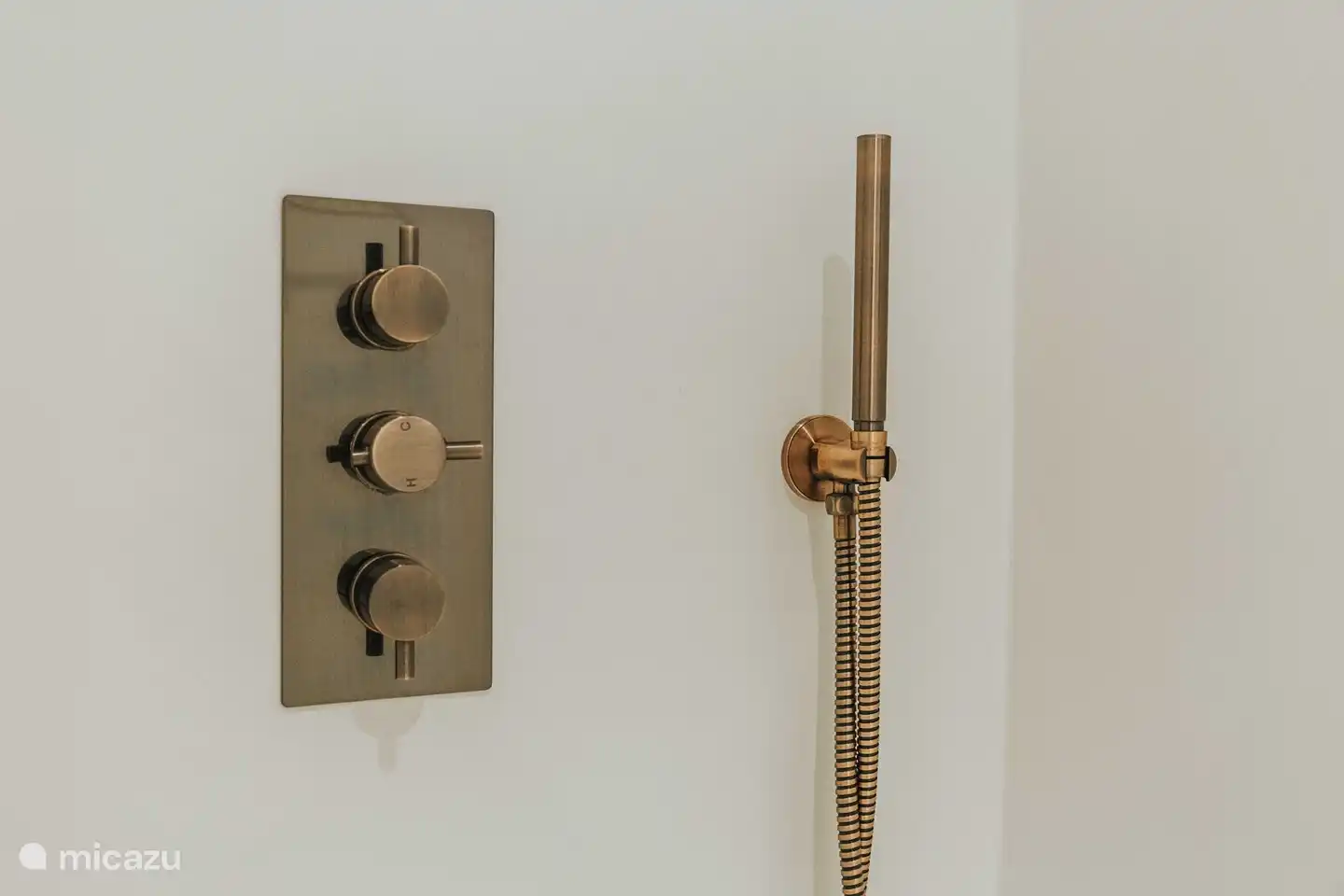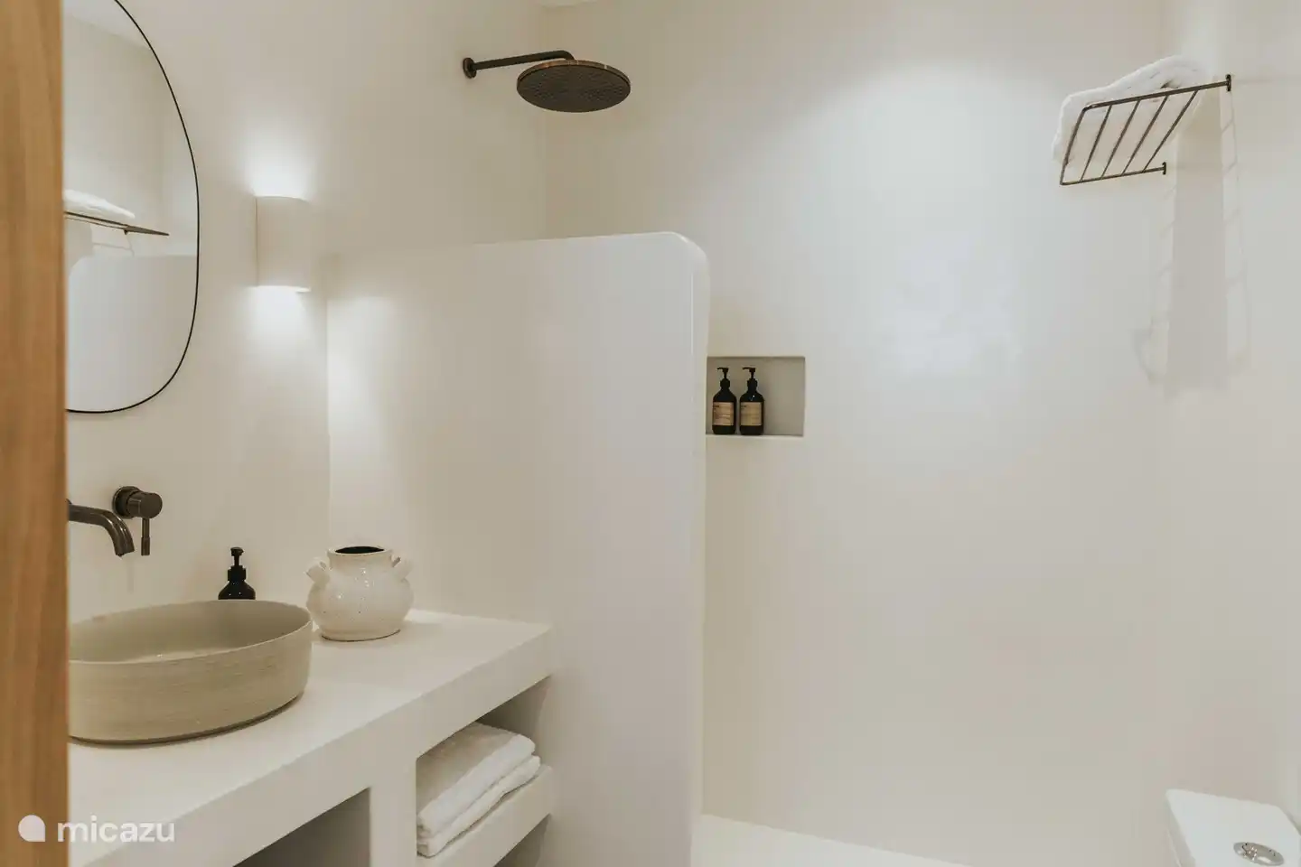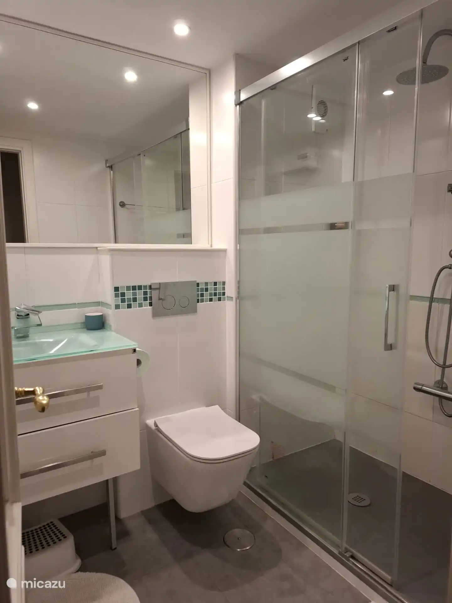 - A bathroom with toilet and walk-in shower and heating. Recently completely renovated.
