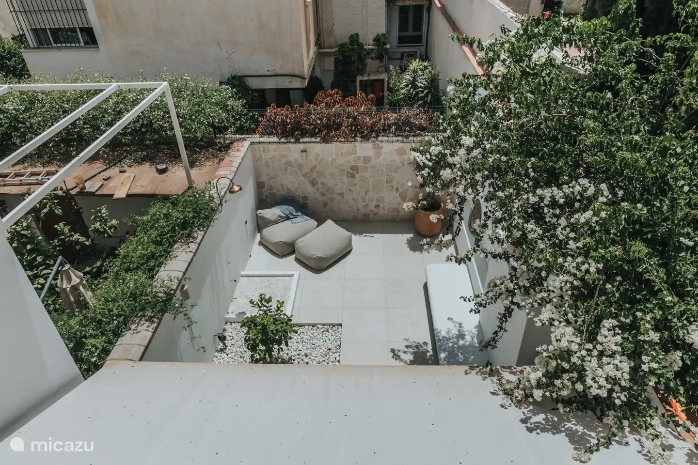 View of beautiful, quiet green courtyard garden with palms, fountain and the sea. The kitchen and bathroom have recently been completely renovated. There is free wifi and there is a digital TV with many channels.