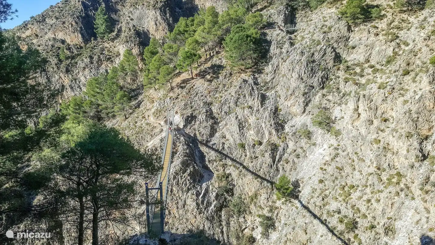 Discover El Saltillo Bridge, one of Spain's largest suspension bridges, nestled in the enchanting landscapes of Canillas de Aceituno. Spanning the Almanchares River, this architectural wonder stretches 50 meters long and 1.20 meters wide. Take a safe stroll on the elevated metal walkways, over 100 meters high, offering stunning views of the Tejeda, Almijara, and Alhama Mountains. El Saltillo Bridge is a must-see for nature enthusiasts and adventure seekers alike.