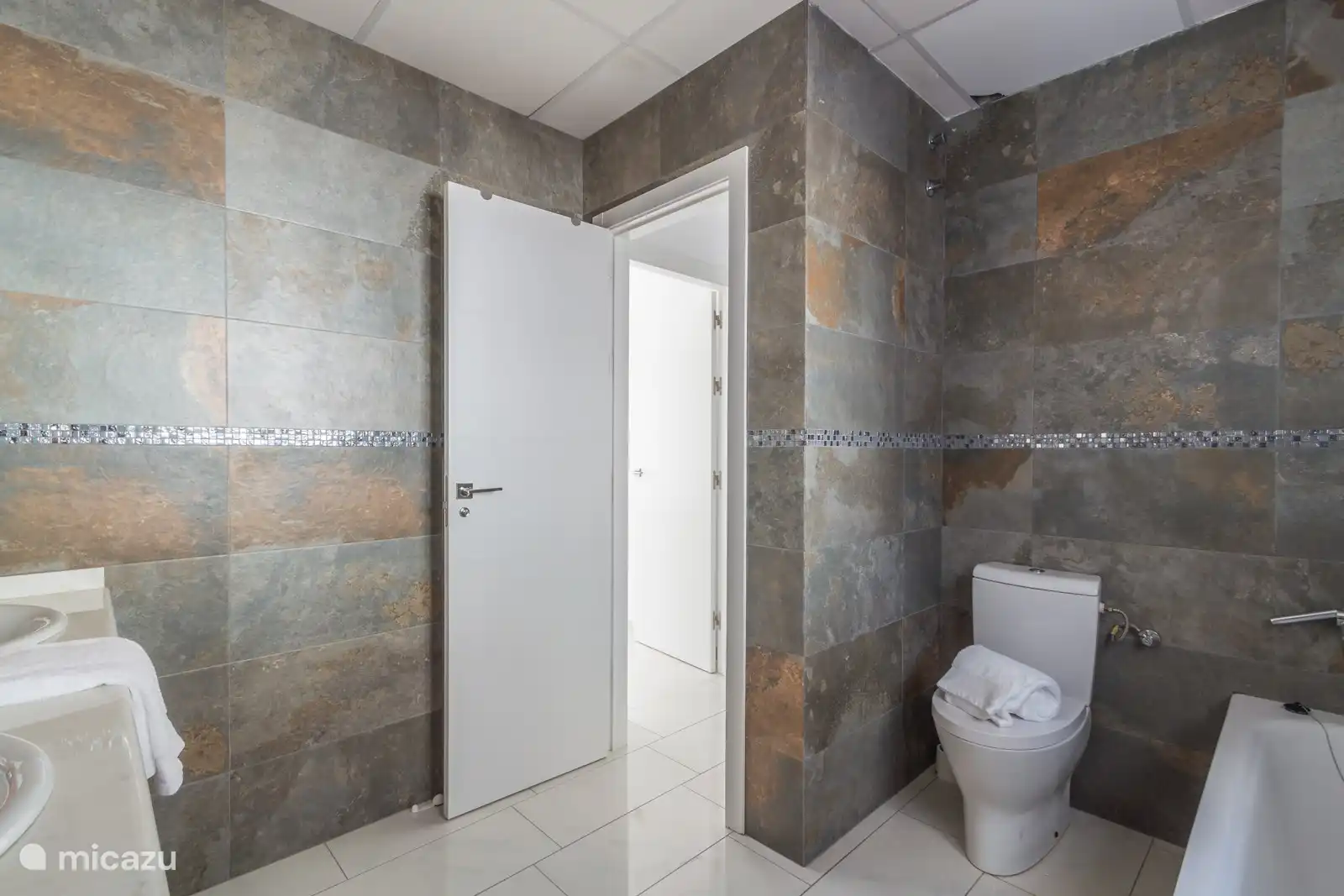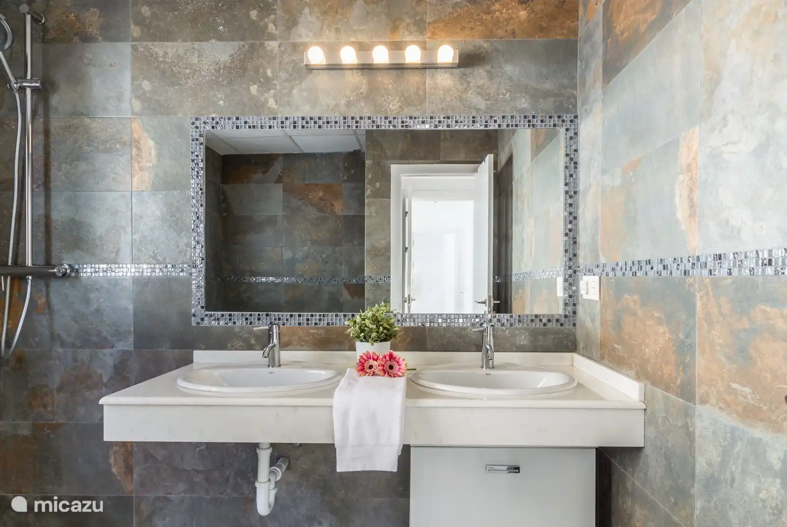 - Master bedroom with a large ensuite bathroom, a corner bath and a walk-in shower, as well as two sinks