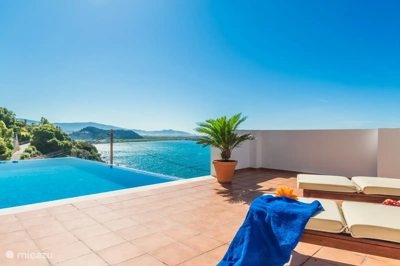 This villa is also suitable for a large group because it can sleep 9 people. Between the covered porch, the roof terrace and the large terrace around the pool, there is room for everyone! You will feel comfortable here no matter what time of year you visit, as the villa has both hot and cold air conditioning and a heated swimming pool. The automatic pool cover is easy to use and is efficient in keeping the water warm when the pool is heated. A safety fence can also be placed around the pool to ensure that young children cannot fall into the water. The layout of the villa is as follows.