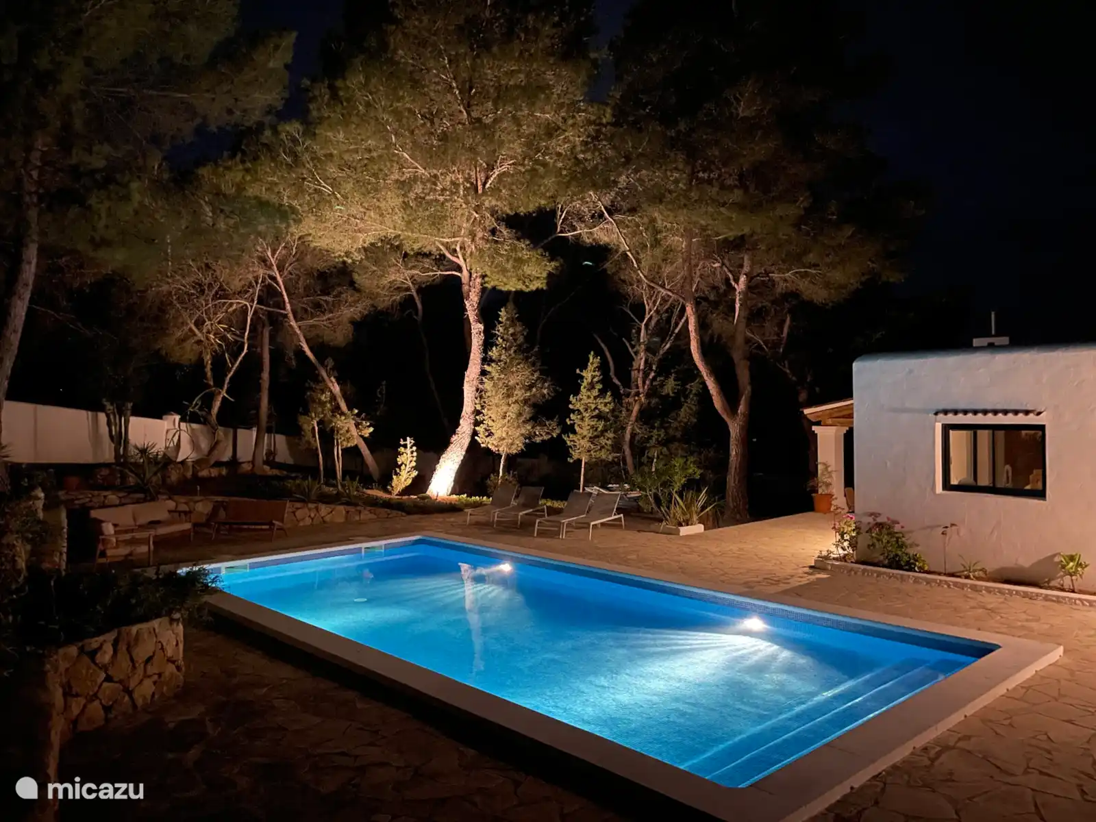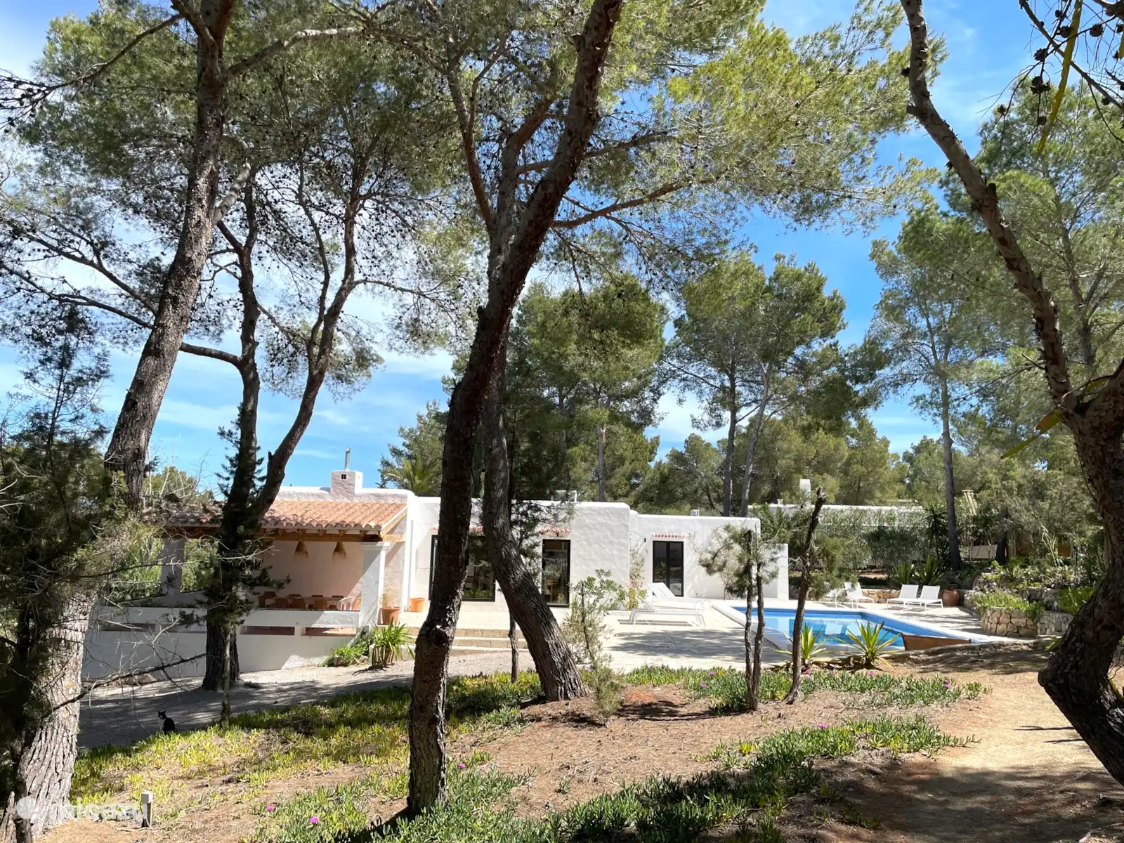 The large private swimming pool and the 25 ares garden are maintained every week and all year round. The distant sea view of sunsets makes its location quiet but also close to the well-known beaches of Cala Comte or Cala Tarida.