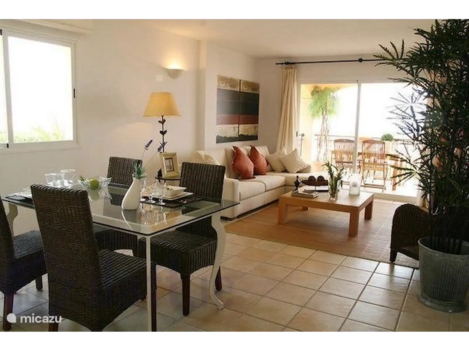 - living room: sitting area, 4/6 person dining table, digital dish reception with Dutch TV, flat screen, DVD player, hi-fi system
