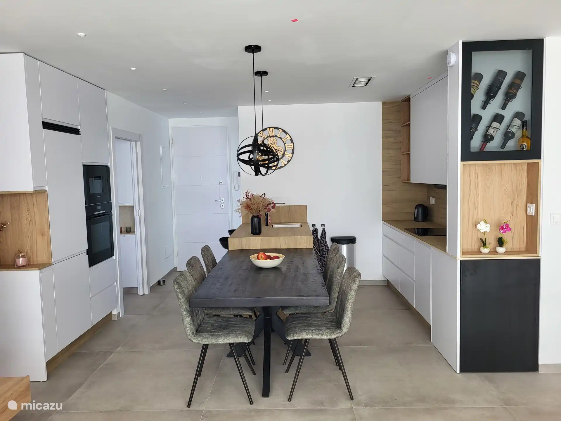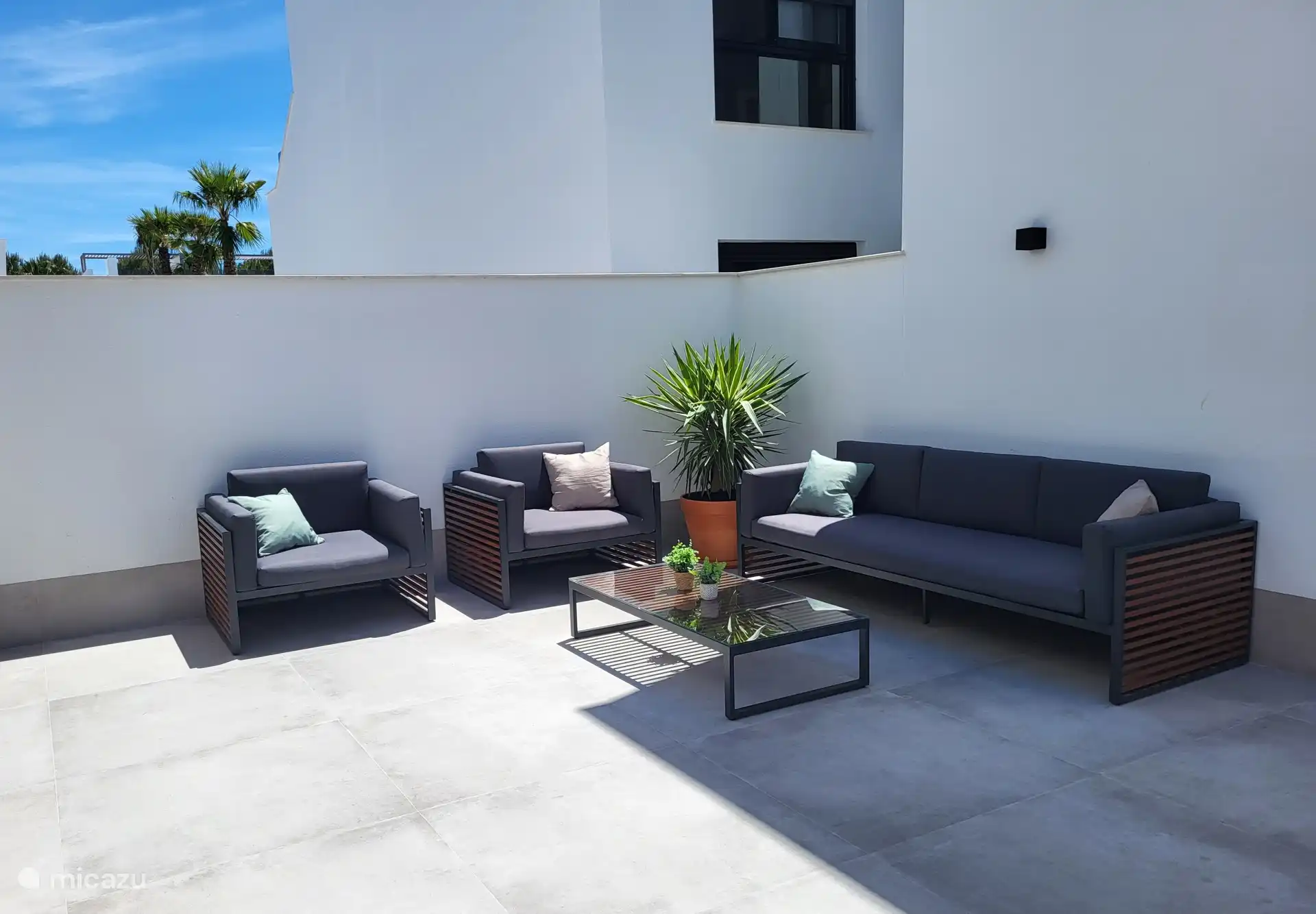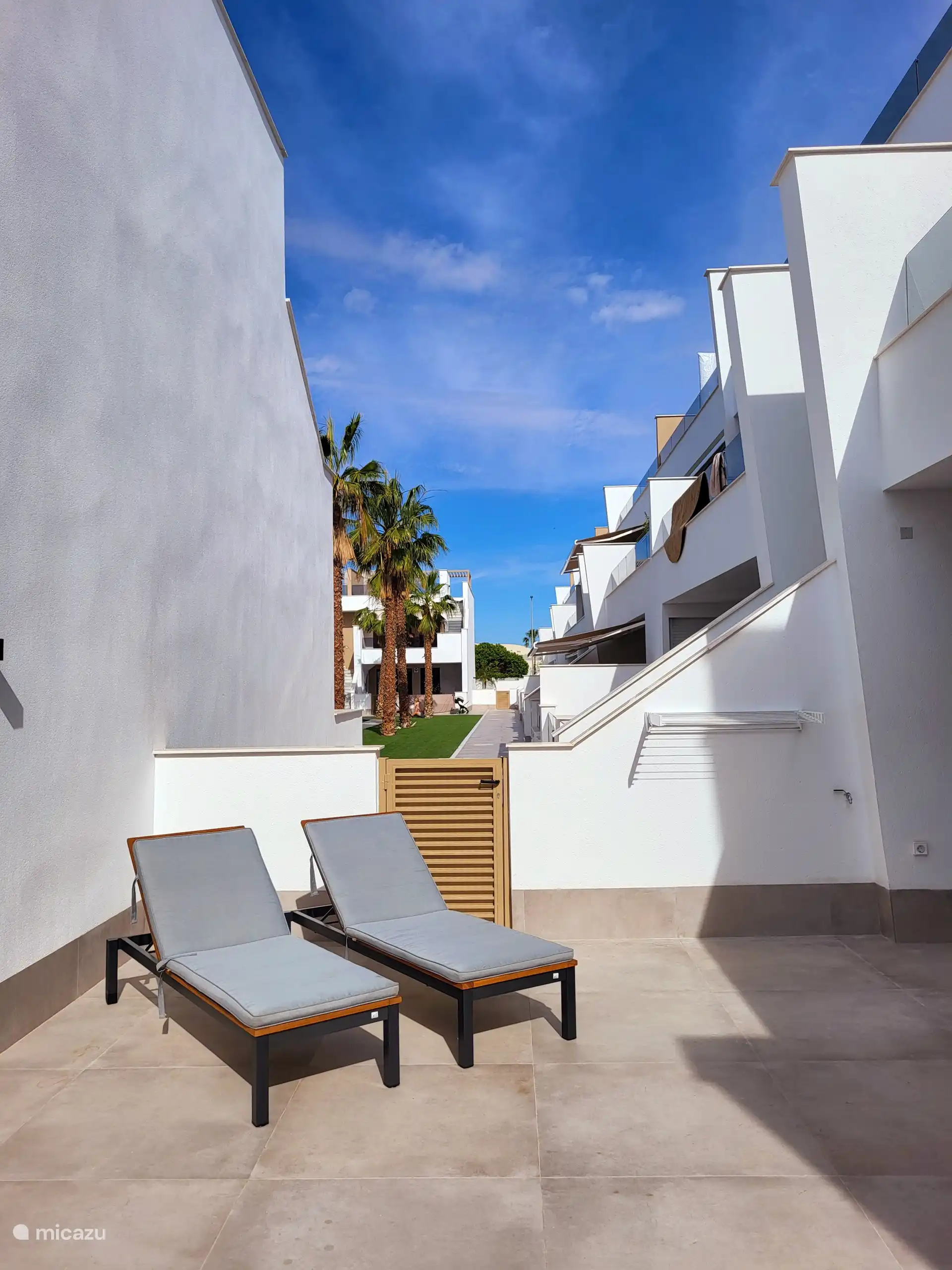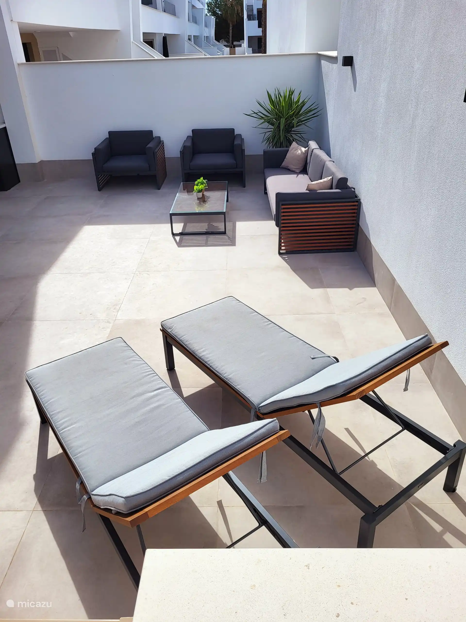 The terrace is equipped with all conveniences: an outdoor kitchen, dining table with 6 chairs, lounge set and sunbeds. The apartment is located in the corner of the complex so you can relax and have a lot of privacy.