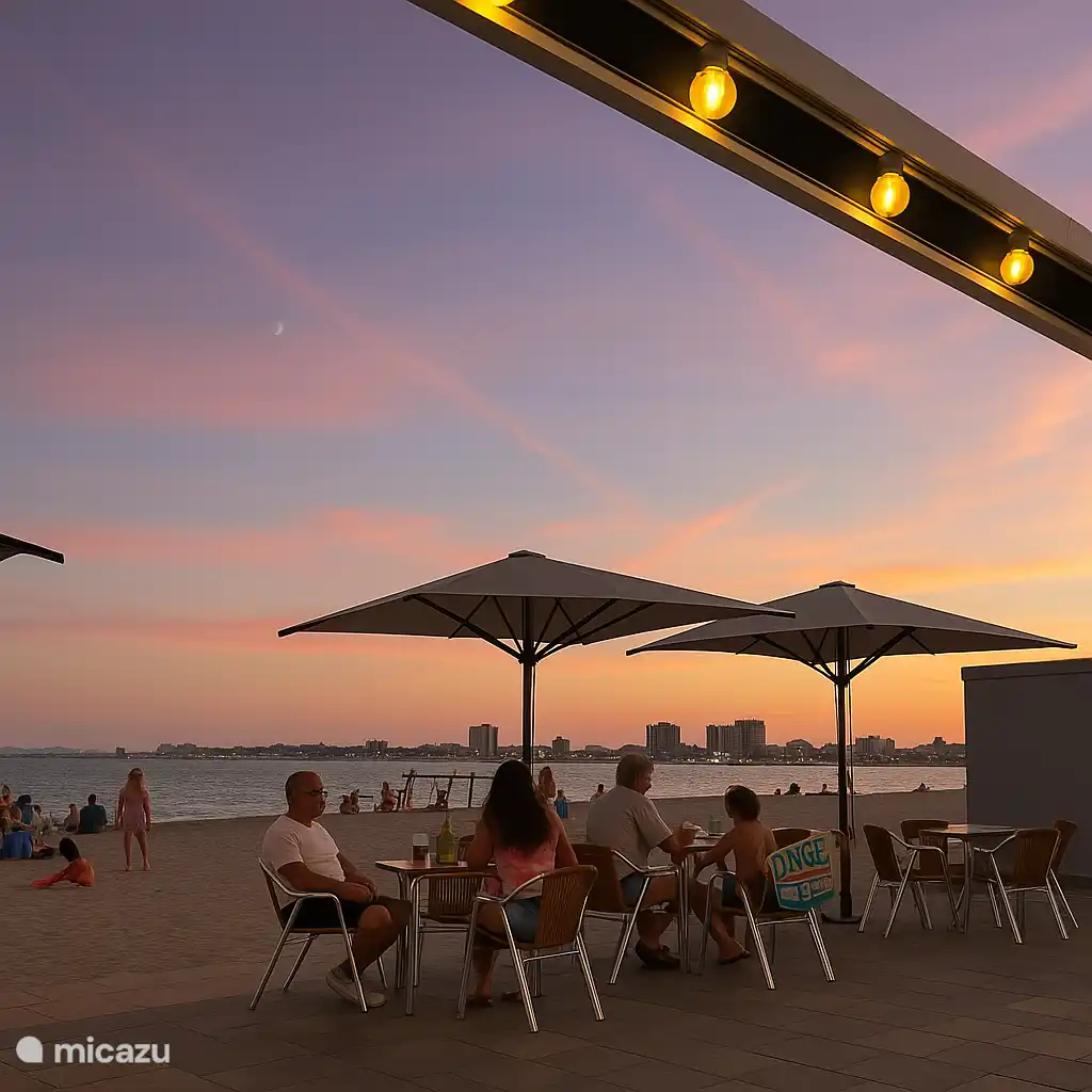 The apartment is located in Lo Pagán, a lively and cozy seaside resort on the Mar Menor. In the nicest street in the village. The location is ideal: you are within a few steps on the beach! Here you can swim in the calm, warm waters of the Mar Menor or enjoy the bigger waves of the Mediterranean Sea, which is also nearby.
