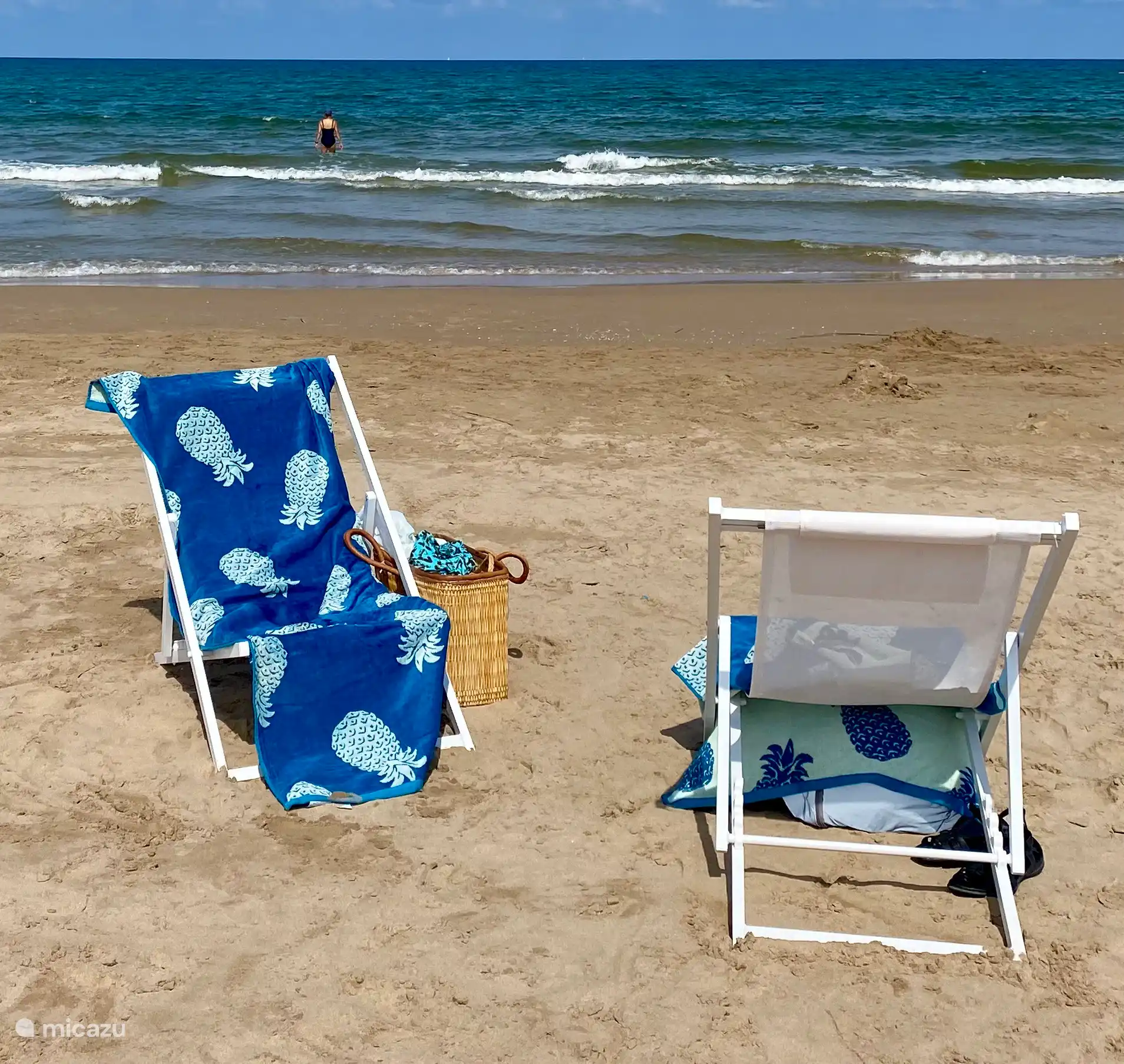 The open kitchen is equipped with a refrigerator, ceramic hob, juicer, dishwasher, oven, microwave, airfryer and nespresso coffee machine, and equipped with all conceivable kitchen utensils and crockery. In the morning you can enjoy your coffee at the kitchen bar. On this floor you will also find two attractive bedrooms (2x1-person bed and 1x2-person bed) with patio doors, air conditioning in both rooms and large deep built-in wardrobes. In addition, a modern bathroom with toilet, bath/shower and two sinks.
