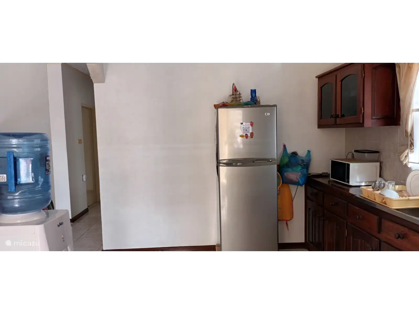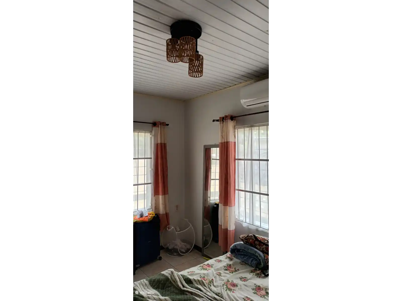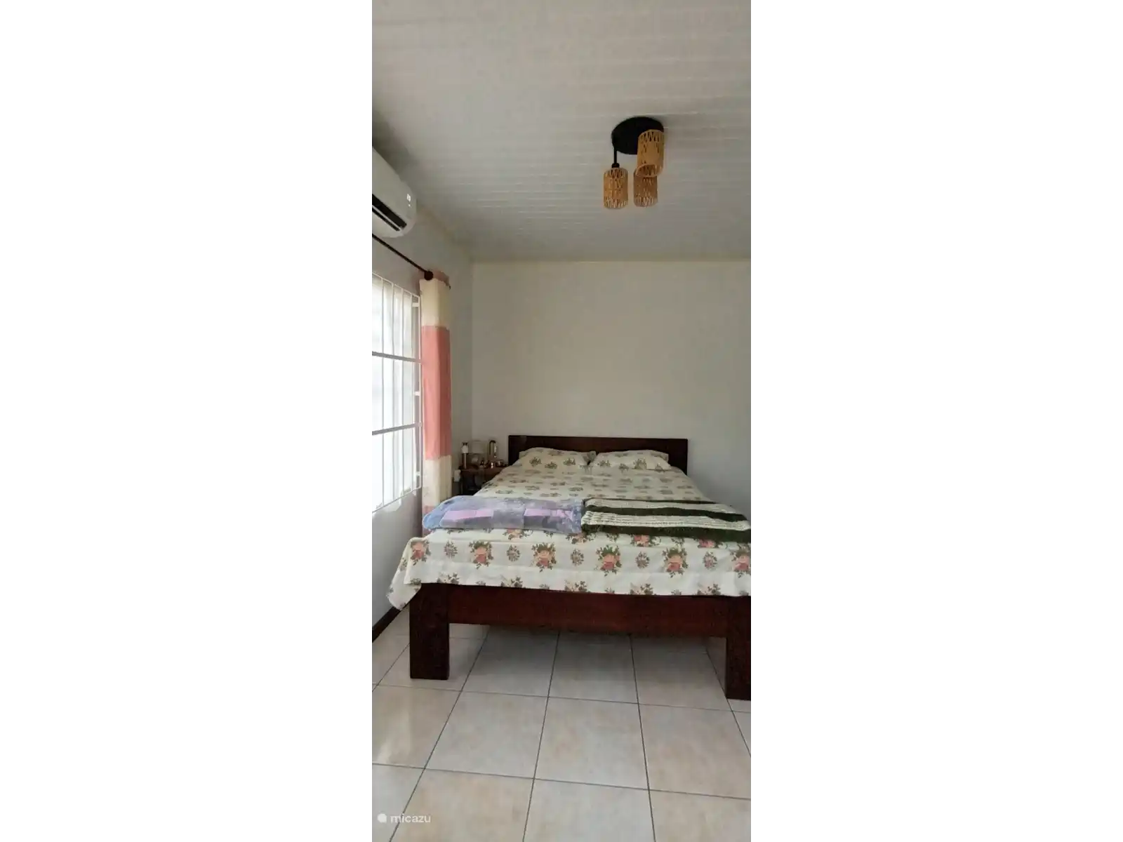 The house has three bedrooms, two of which are furnished with a double bed, wardrobe, and air conditioning. A third bedroom has a single bed and fan, where you can also temporarily store your suitcases.