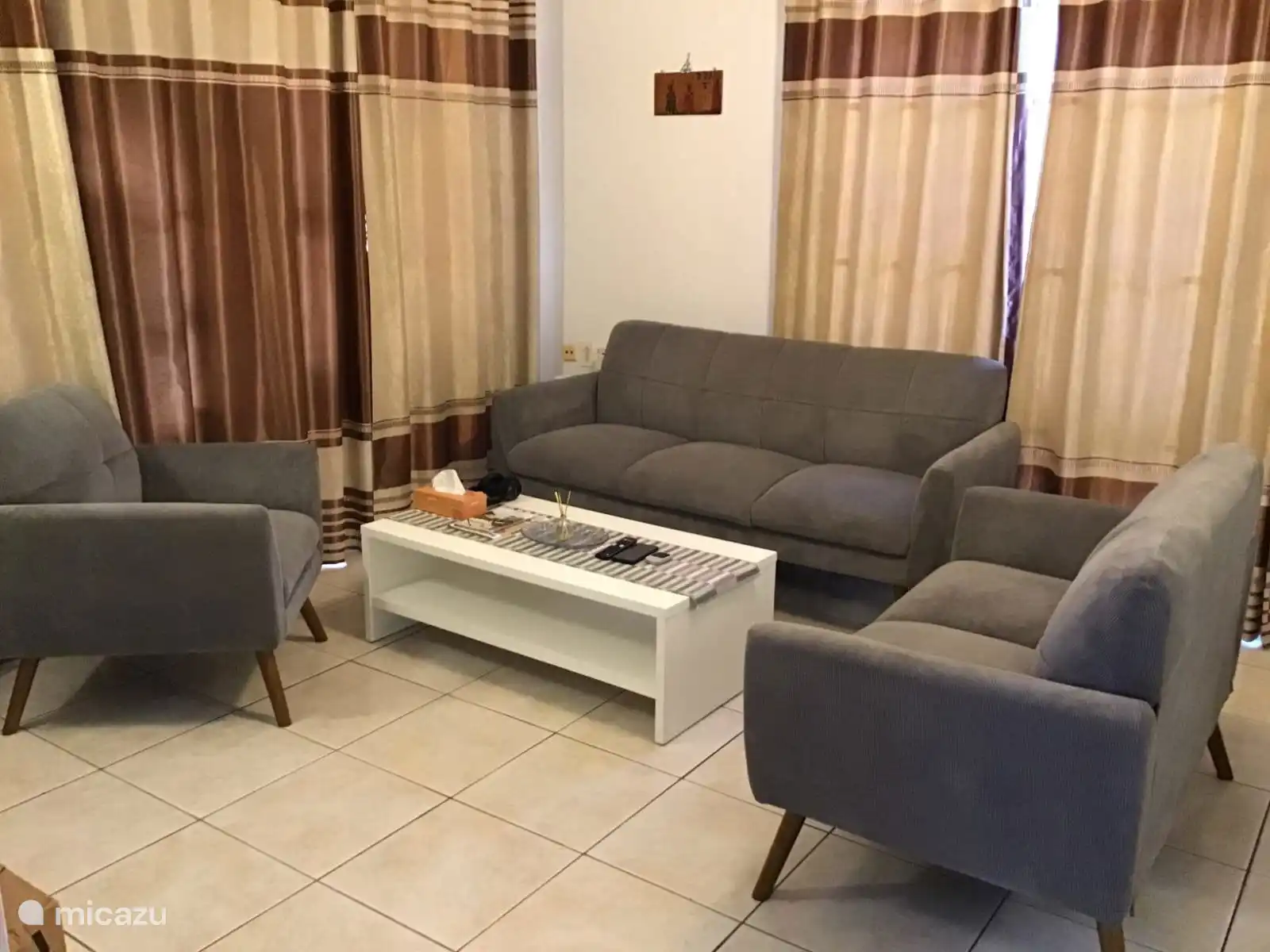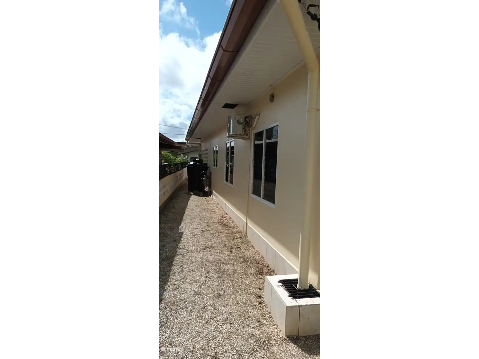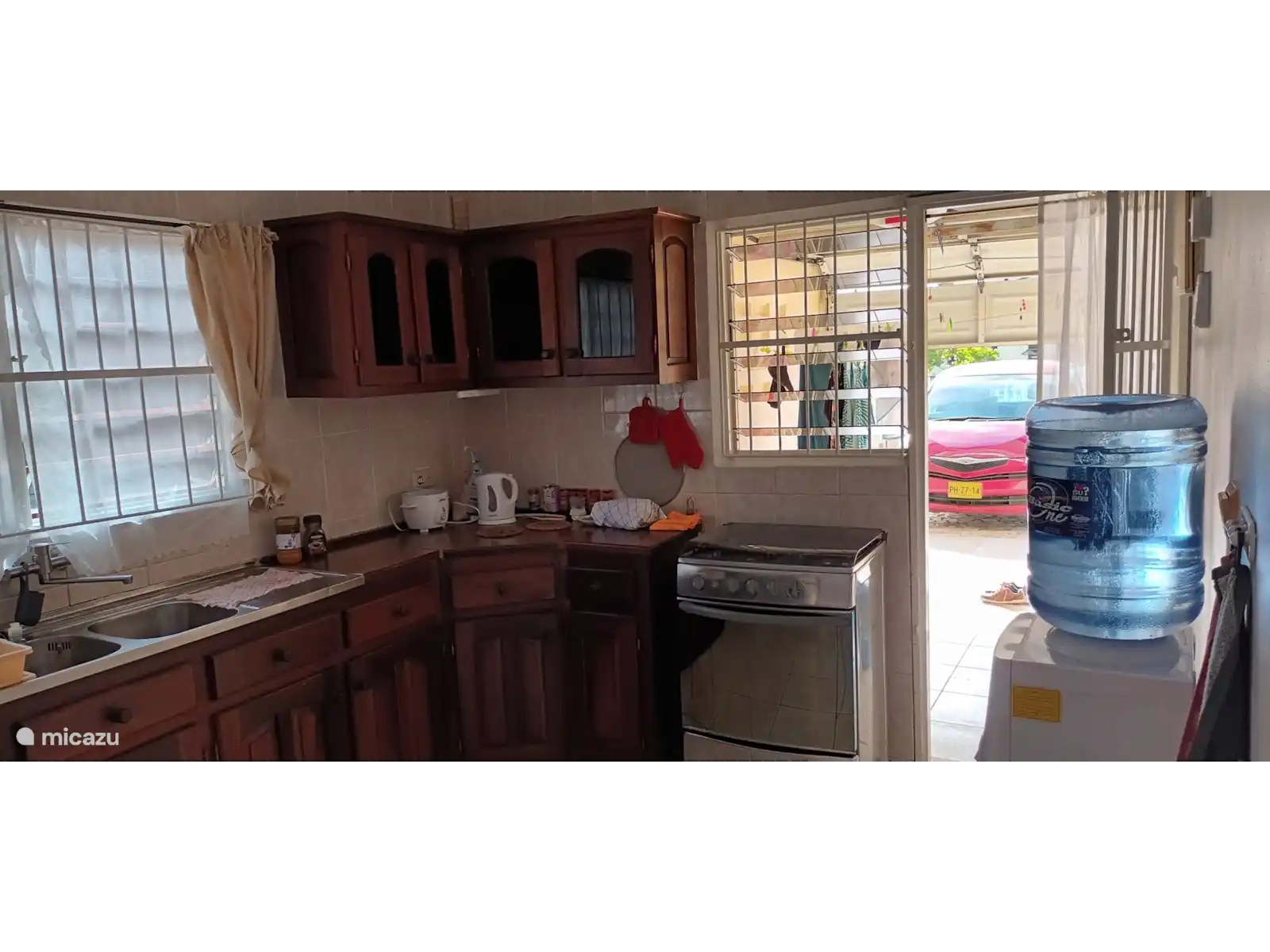 The house has three bedrooms, two of which are furnished with a double bed, wardrobe, and air conditioning. A third bedroom has a single bed and fan, where you can also temporarily store your suitcases.