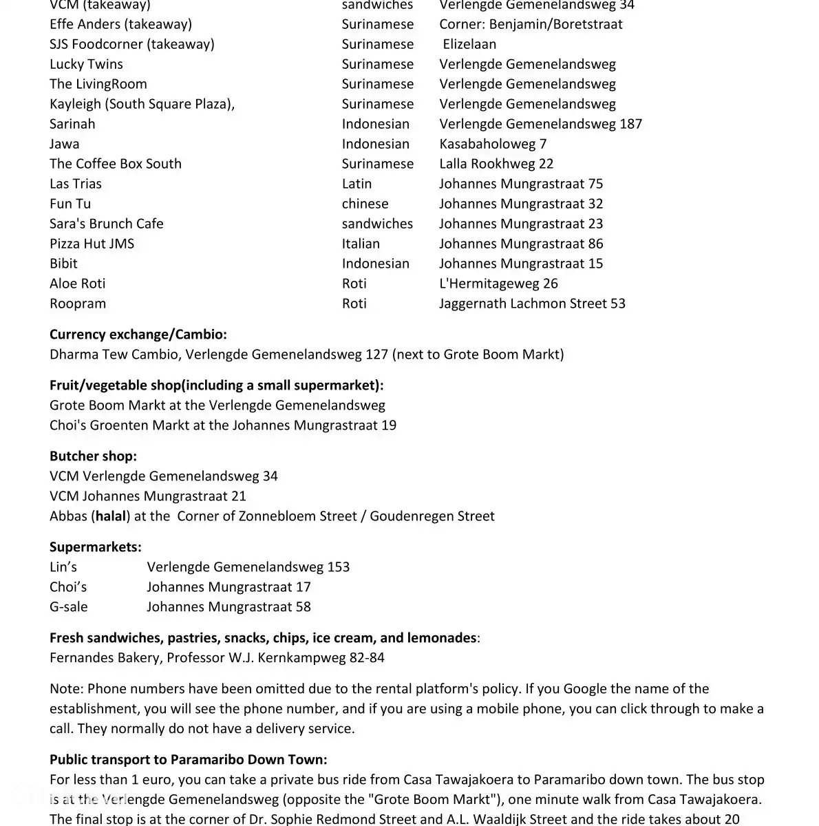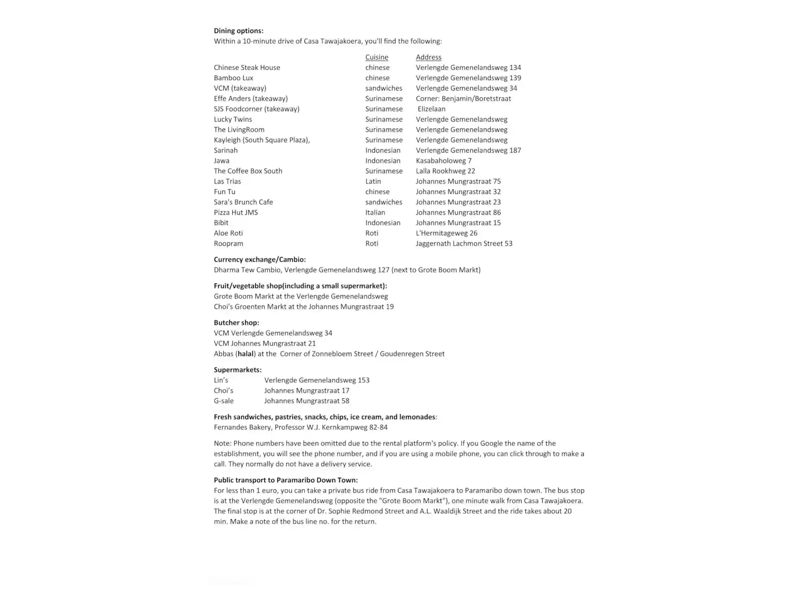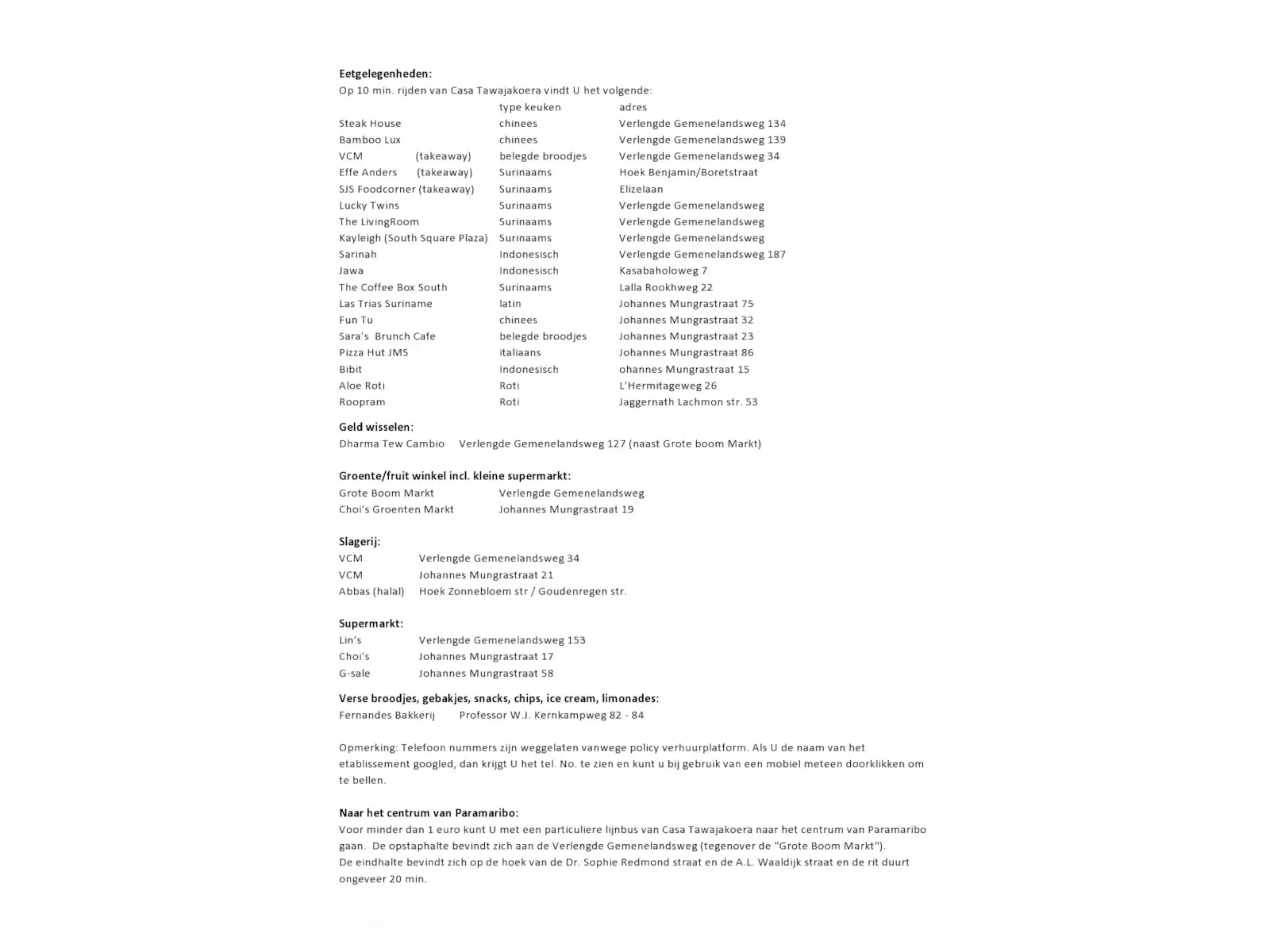 "Casa Tawajakoera" is located in the Welgelegen resort (Paramaribo district) on Tawajakoerastraat, a side street off Verlengde Gemenelandsweg.