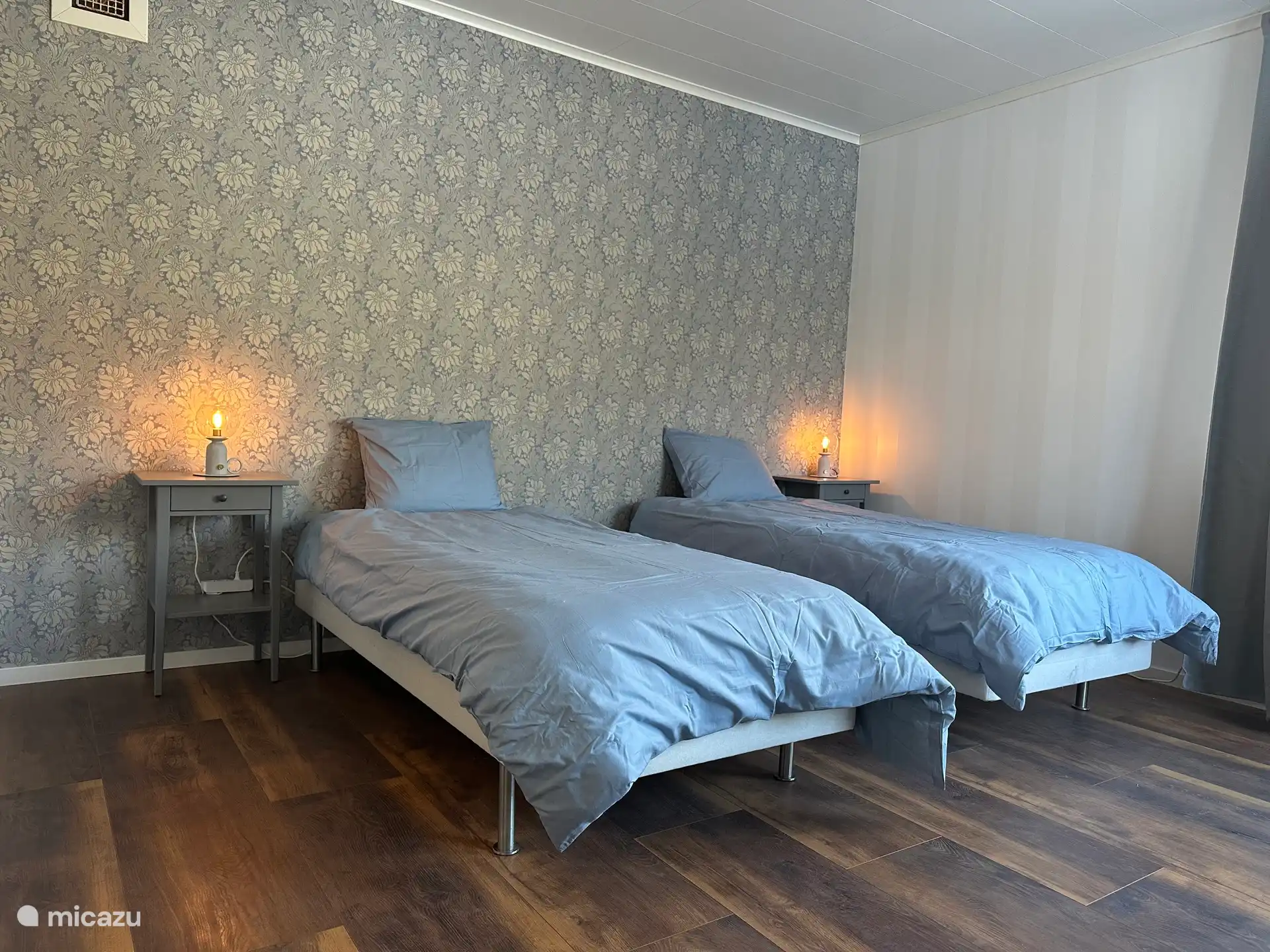 The accommodation has 2 bedrooms , one bedroom has a double bed (1.60 x 2) and the other bedroom has 2 single beds (90 x 2) that can be pushed together. This bedroom also has a sofa bed. The beds are made